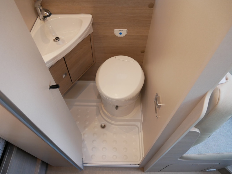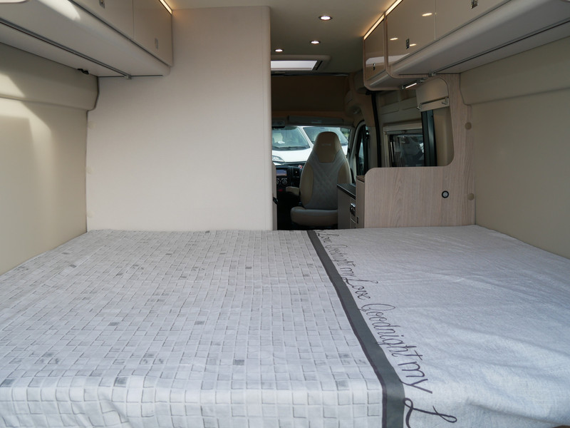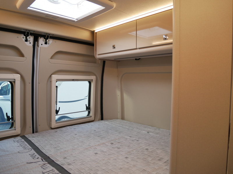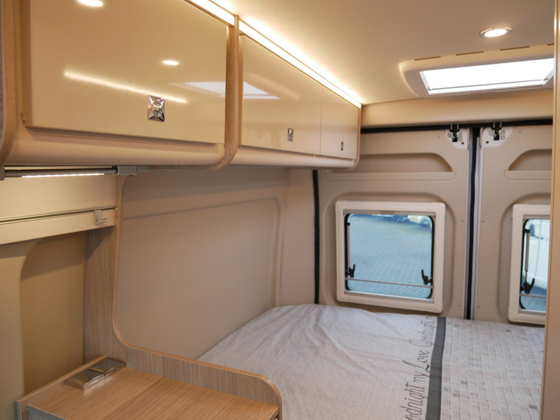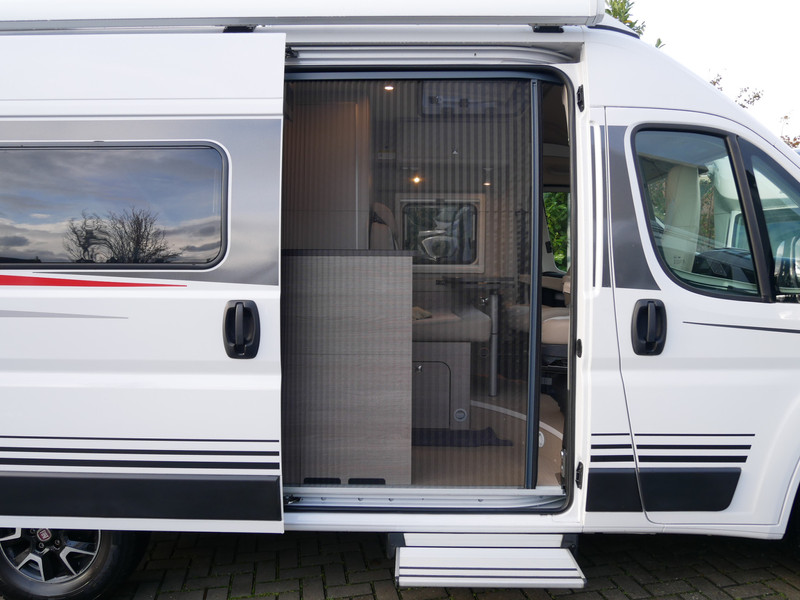 De camper is onder andere voorzien van een nette afwerking met half lederen bekleding, keuken met 2 pits kooktoestel, dwarsbed, slaaphefdak, cruise control, Truma kachel op gas, boiler op gas, compressor koelkast, modern en luxe ogende tinten in het interieur, wasbak, motorairco, zeer veel opbergmogelijkheden door de vele bovenkasten, toiletruimte met douche, een ruime zit met tafel, radio/cd/mp-3 speler, bluetooth, navigatie, achteruitrijcamera en verduistering rondom.