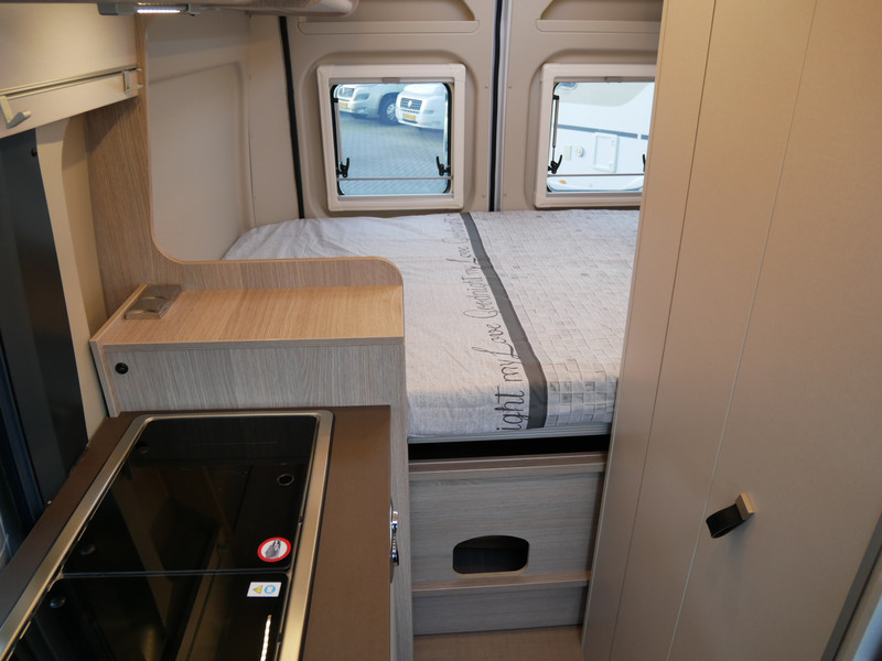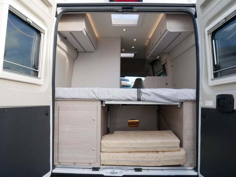 Maten: De camper heeft een stahoogte van 189 cm, dwarsbed: 135 x195 cm en het hefbed 130 X 200 cm.