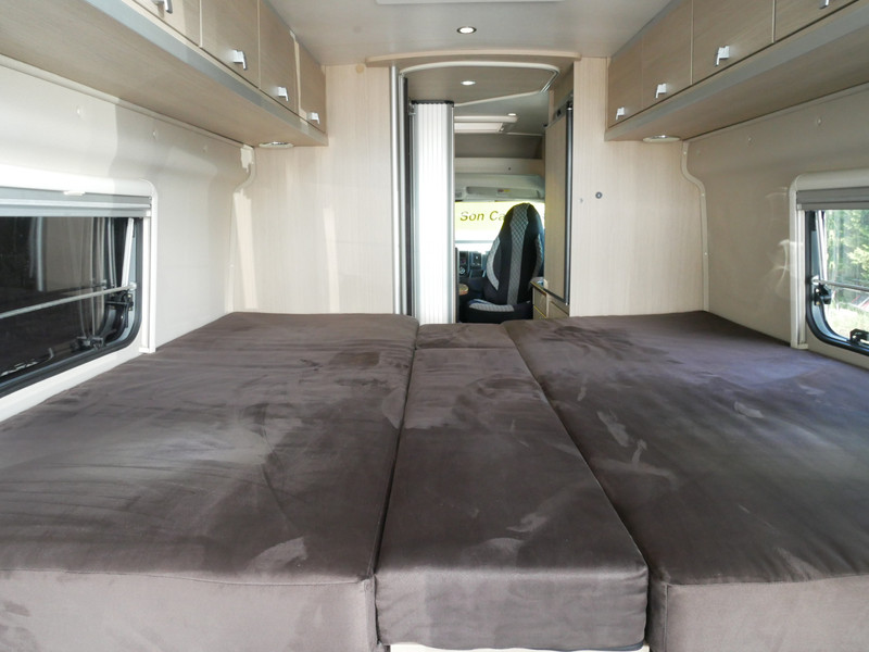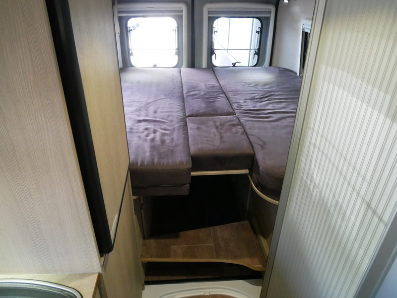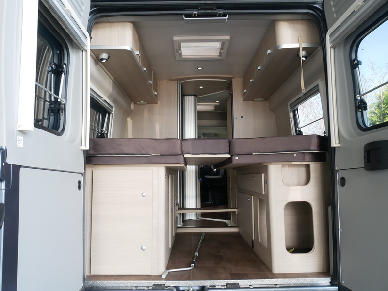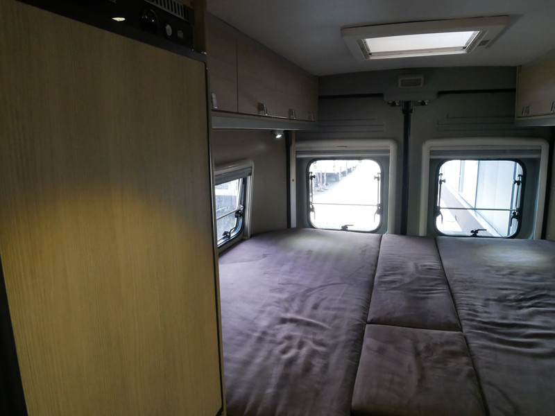 Maten: De camper heeft een stahoogte van 190 cm en lengtebedden: links 190 X 80 cm rechts 195 X 80 cm en volledige breedte 195 cm.