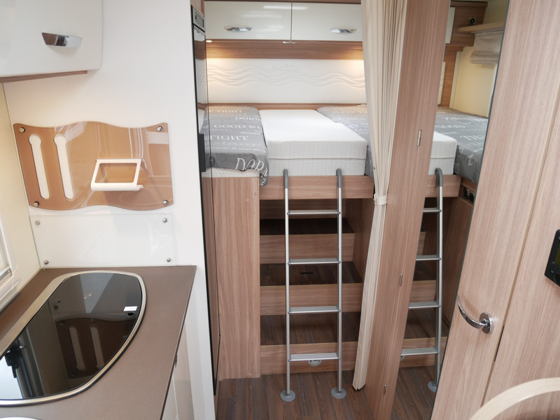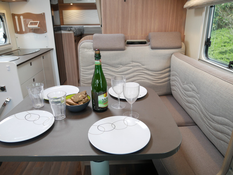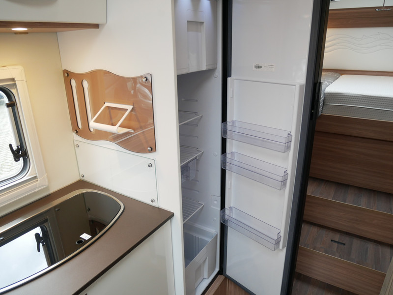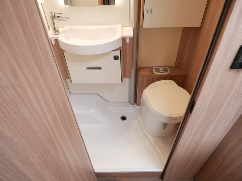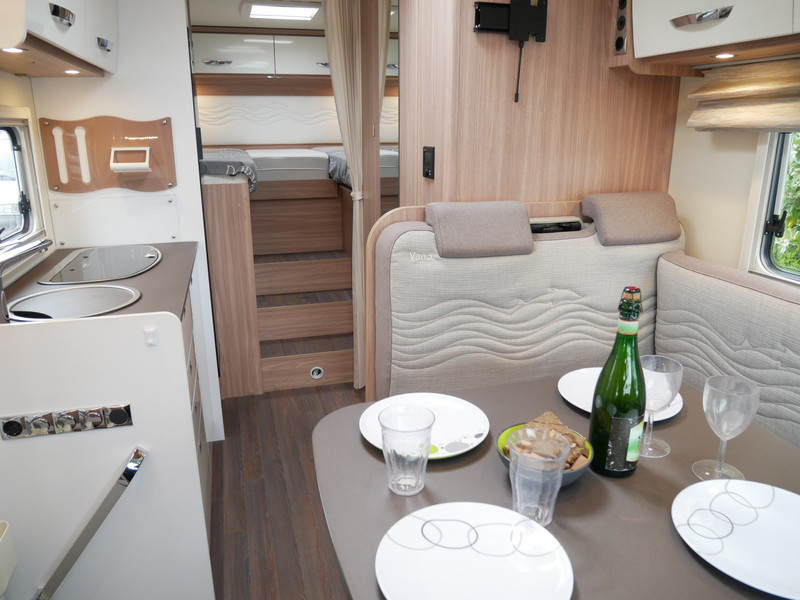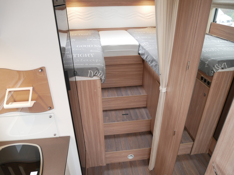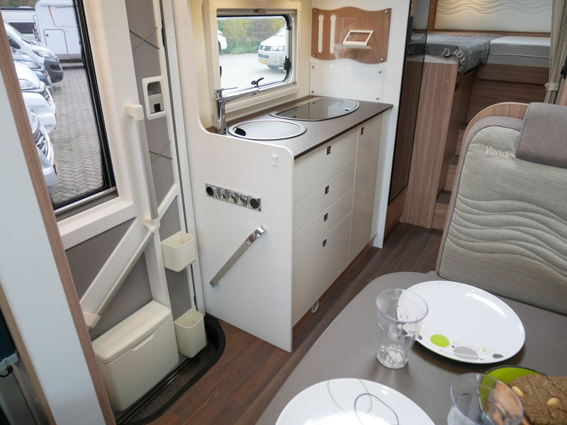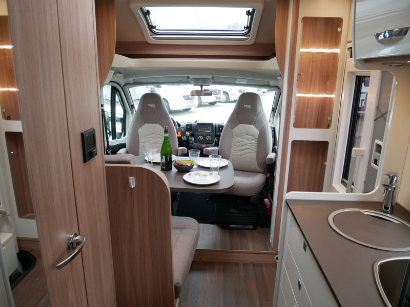 De camper is onder andere voorzien van de Delfin uitvoering, hierin zijn de mooie houtkleuren te vinden in combinatie met de chique ogende lichte bekleding.