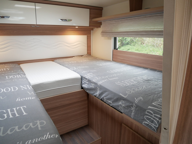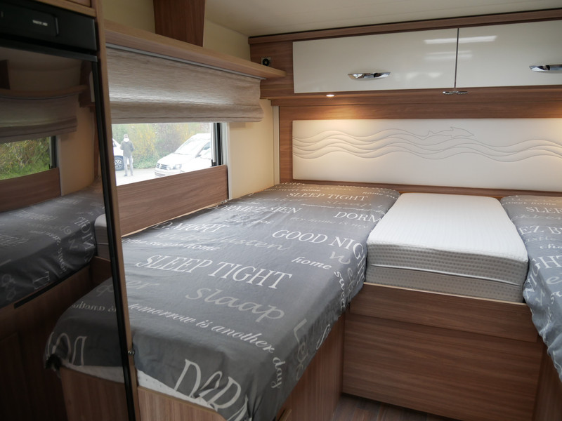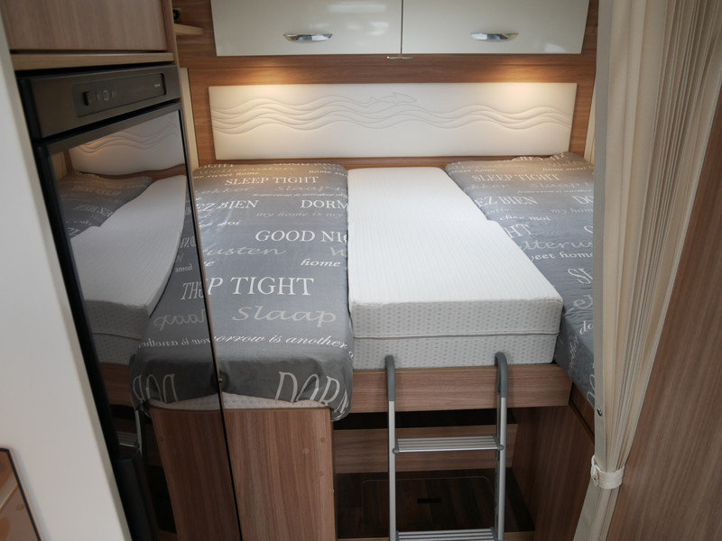 Maten: de camper heeft een stahoogte van 200 cm, lengtebedden: links: 198 X 80 cm, rechts: 198 x 80 cm en volle breedte: 200 cm.