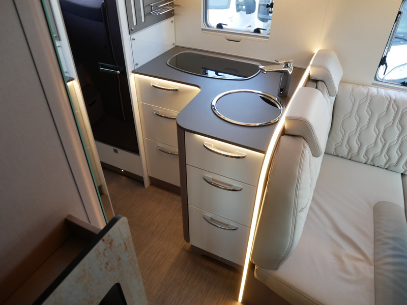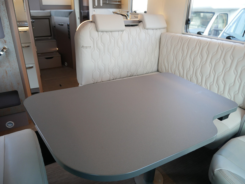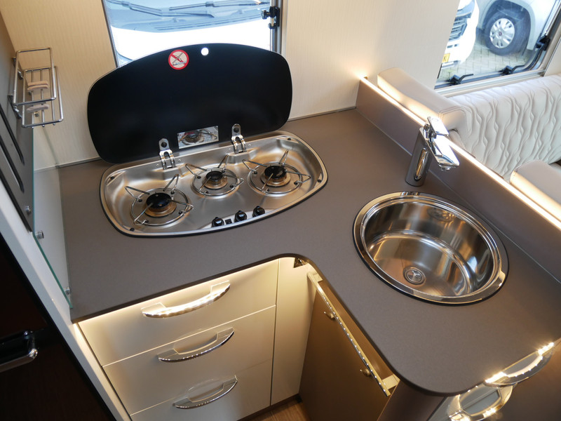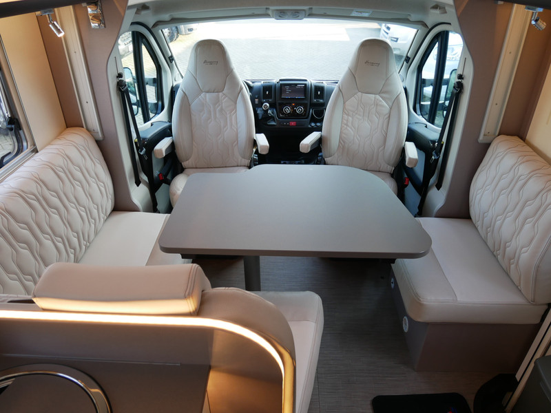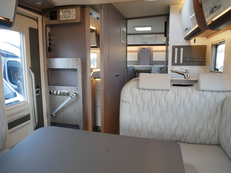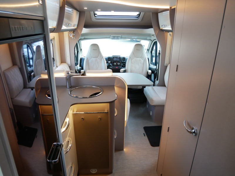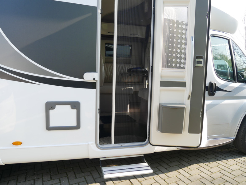De camper is onder andere voorzien van een zeer mooie en luxe afwerking met lederen stoelen, moderne houtlook in het interieur, cassette luifel, Truma combiketel op gas, luxe ruime keuken met 3 pits kooktoestel, XL entree deur, centrale deurvergrendeling op alle deuren, elektrische opstap, hagelbestendig dak, wasbak, thermovloer (gelijkvloers) met twee grote voorraadvakken, lengtebedden, motorairco, zeer veel opbergmogelijkheden in de vele bovenkasten en de grote kast ruimtes, ruime toiletruimte, douche ruimte, XXL koelkast (142 liter) met groot vriesvak, een ruime rondzit met grote tafel en een XXL garage onder de lengtebedden met links en rechts een grote garagedeur.