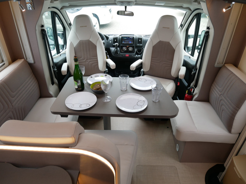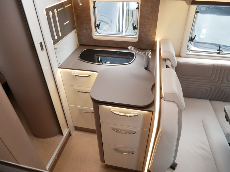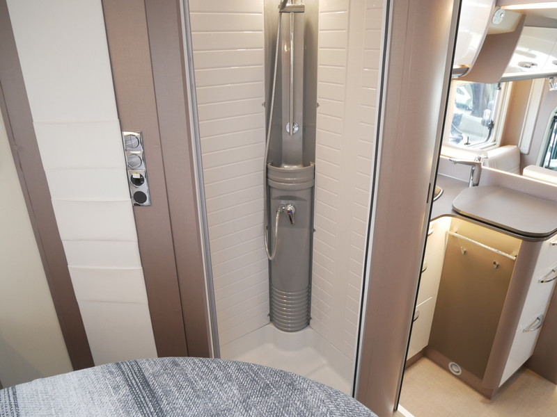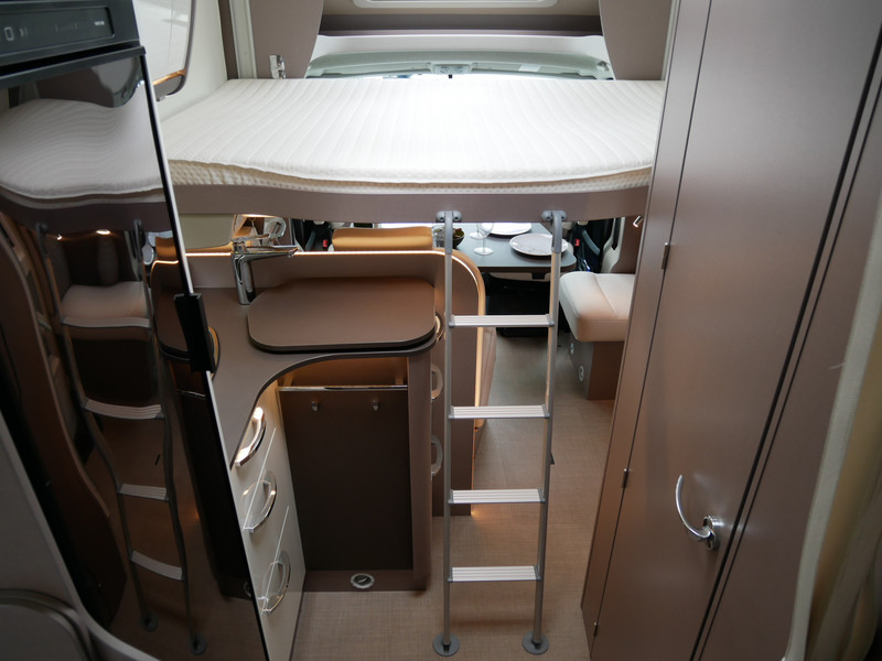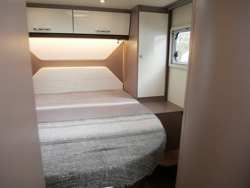 De camper is onder andere voorzien van een zeer mooie en luxe afwerking met lichte half lederen stoelen, moderne houtlook in het interieur, cassette luifel, luxe ruime keuken met 3 pits kooktoestel, XL entree deur, centrale deurvergrendeling op alle deuren, elektrische opstap, hagelbestendig dak, elektrisch hefbed, wasbak, thermovloer (gelijkvloers) met twee grote voorraadvakken, motorairco, zeer veel opbergmogelijkheden in de vele bovenkasten en de grote kast ruimtes, ruime toiletruimte, douche ruimte, koelkast (142 liter) met groot vriesvak, Queensbed in hoogte verstelbaar, een ruime rondzit met grote tafel en een XXL garage onder het queensbed met links en rechts een grote garagedeur (105 x 80 cm)