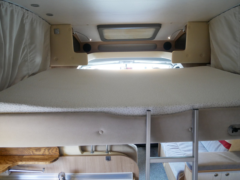 Maten: De camper heeft een stahoogte van 200 cm en 190 cm onder het hefbed, fransbed: 195 x 135 cm, hefbed: 145 x 195 cm.