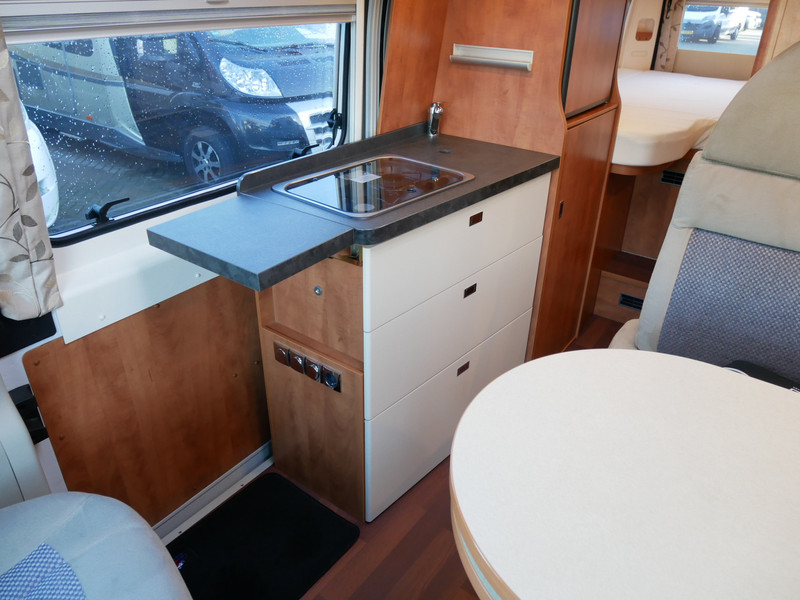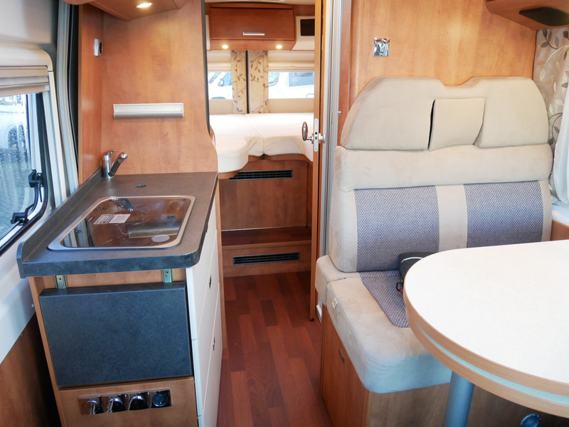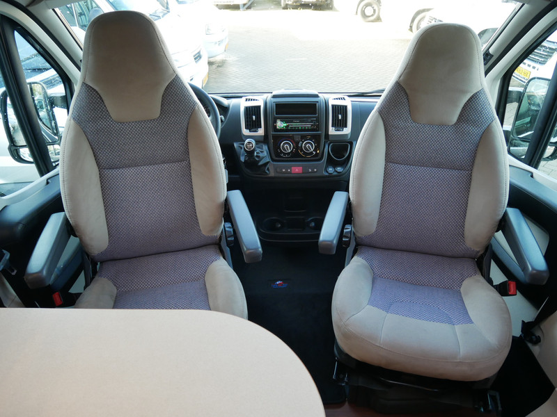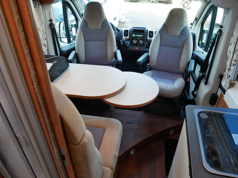 De camper is onder andere voorzien van een nette afwerking met stoffen bekleding, een goede isolatie die rijgeluiden minimaliseren, keuken met 2 pits kooktoestel, lengtebedden, cruise control, Truma combiboiler, verwarming op gas, warm water op gas, mooie en luxe houttinten in het interieur, wasbak, motorairco, hordeur entree, kastjes die bevestigt zijn met dubbele verbindingstechnieken voor een optimale stevigheid en een lange levensduur, zeer veel opbergmogelijkheden door de vele bovenkasten, toiletruimte met douche, slim wegschuifbare wc, radio/cd/mp-3 speler, bluetooth, achterruitrijcamera en een ruime zit met tafel.