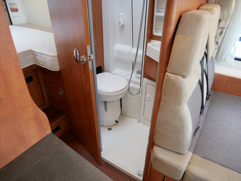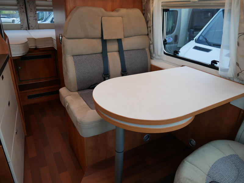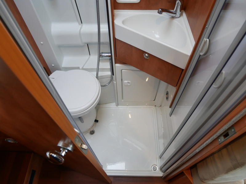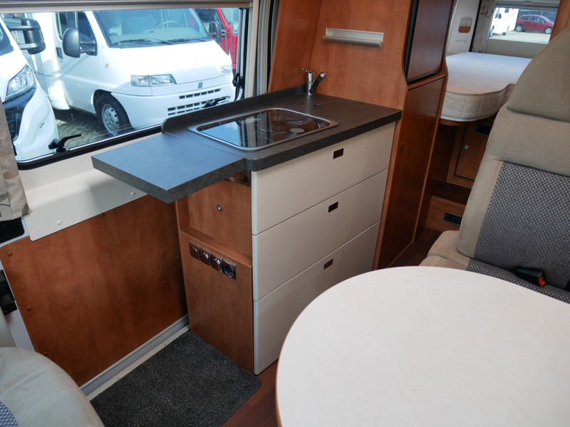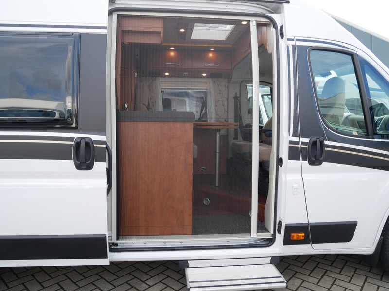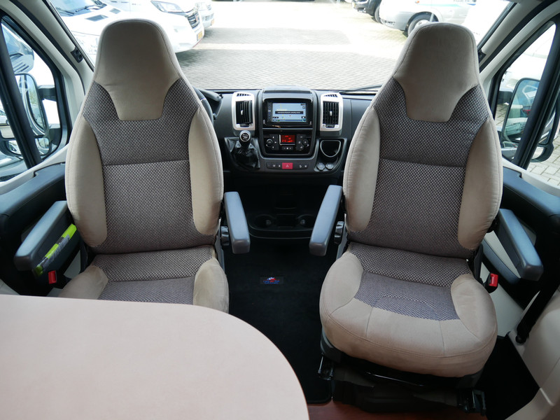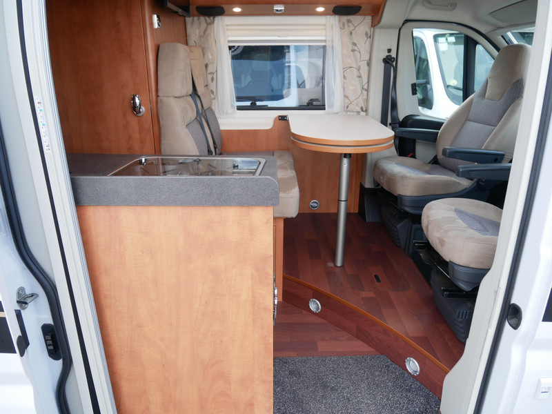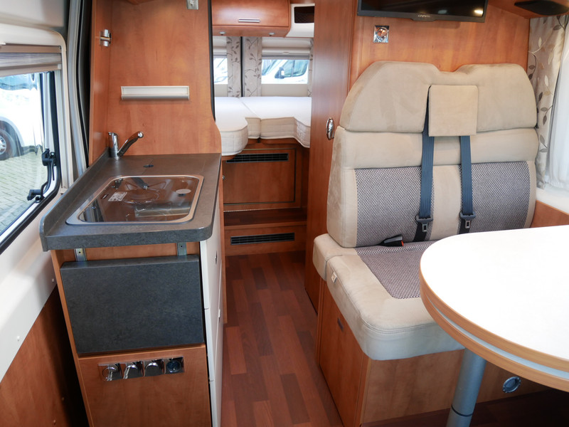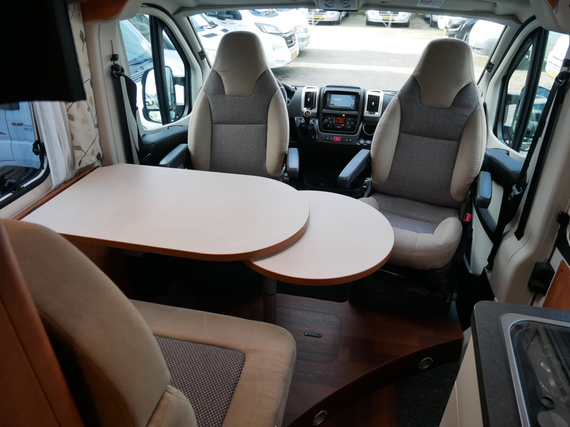 De camper is onder andere voorzien van een nette afwerking met stoffen bekleding, een goede isolatie die rijgeluiden minimaliseren, keuken met 2 pits kooktoestel, lengtebedden, cruise control, Truma combiboiler, verwarming op gas, warm water op gas, mooie en luxe houttinten in het interieur, wasbak, motorairco, hordeur entree, kastjes die bevestigt zijn met dubbele verbindingstechnieken voor een optimale stevigheid en een lange levensduur, zeer veel opbergmogelijkheden door de vele bovenkasten, toiletruimte met douche, slim wegschuifbare wc, radio/cd/mp-3 speler, bluetooth, navigatie, achterruitrijcamera en een ruime zit met tafel.