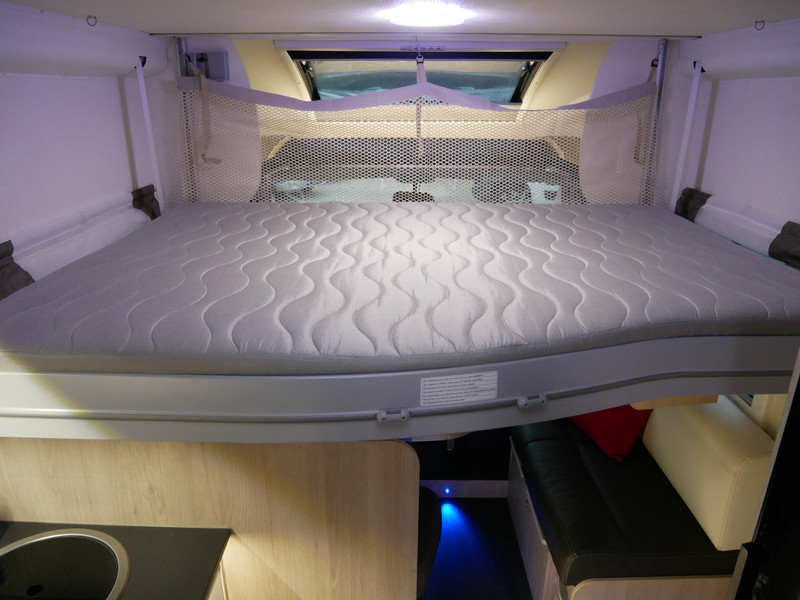 De camper is huisdier en rookvrij. Maten: De camper heeft een stahoogte van 185 Cm onder het hefbed en 200 cm in de rest van de camper, Queensbed 140 X 195 Cm en Hefbed 140 X 195 Cm.