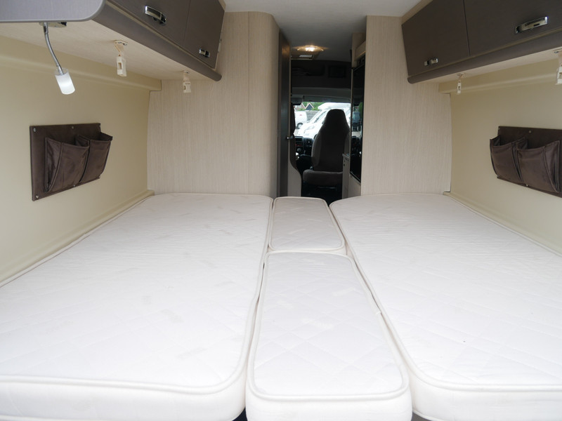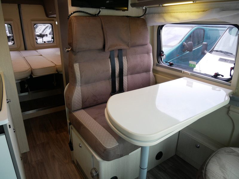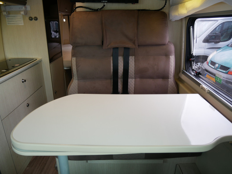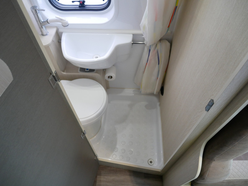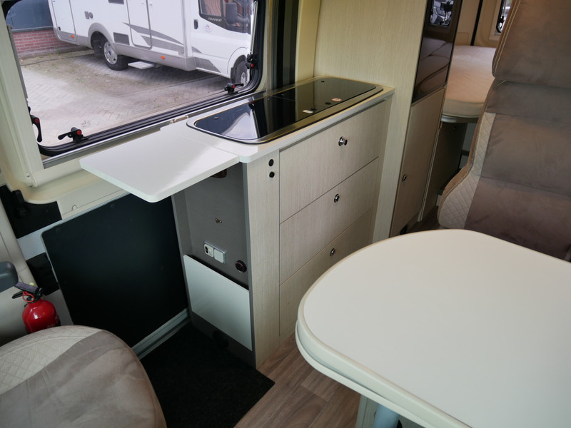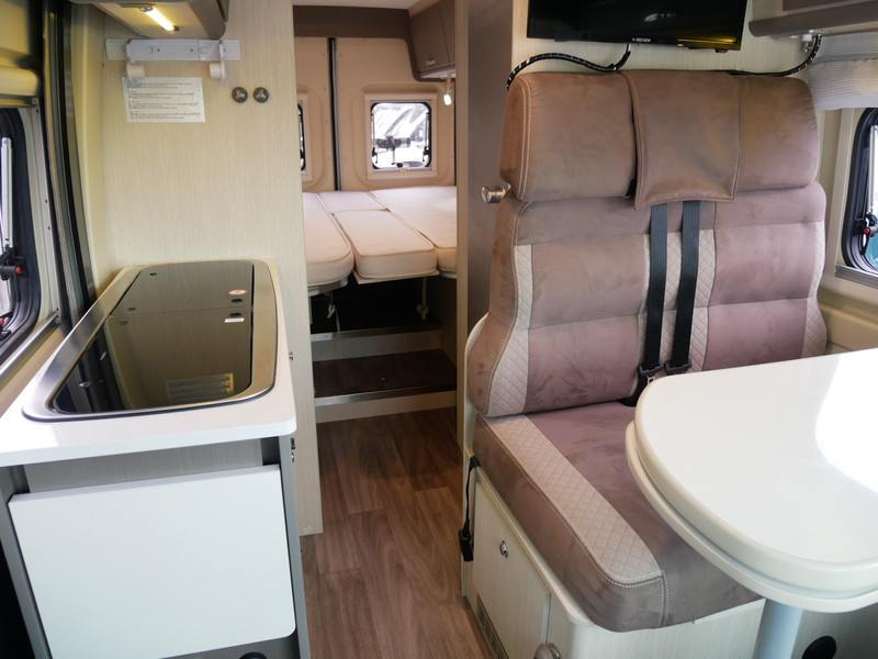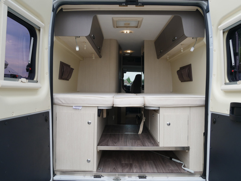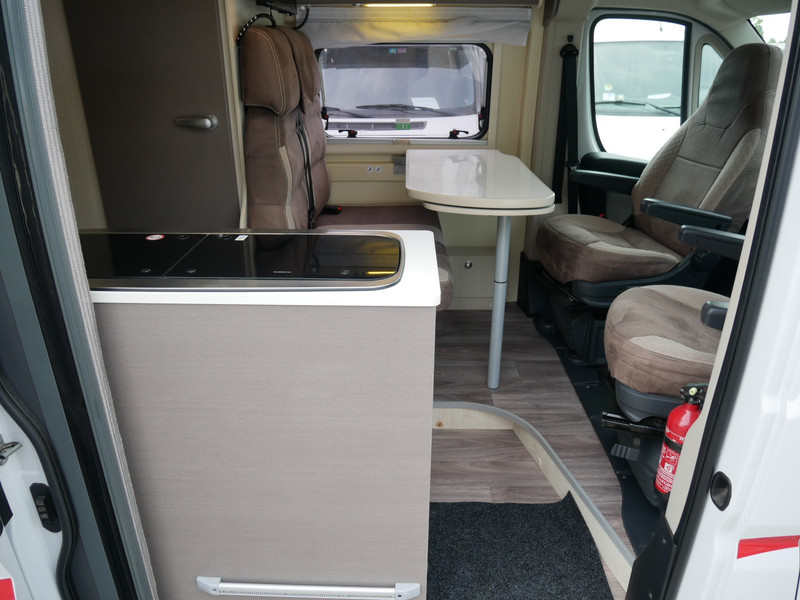 De camper is onder andere voorzien van een nette afwerking met stoffen bekleding en moderne licht ogende tinten in het interieur, keuken met 2 pits kooktoestel, lengtebedden, cruise control, Webasto dieselkachel, boiler op gas, koelkast, wasbak, motorairco, zeer veel opbergmogelijkheden in de vele bovenkasten, toiletruimte met douche, een ruime zit met tafel en verduistering in het campergedeelte.