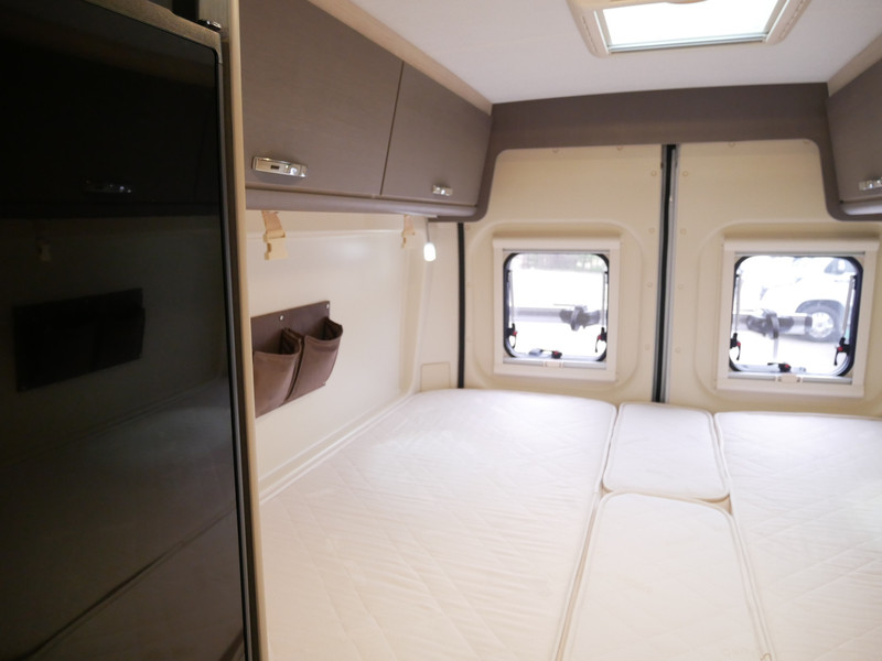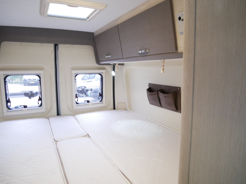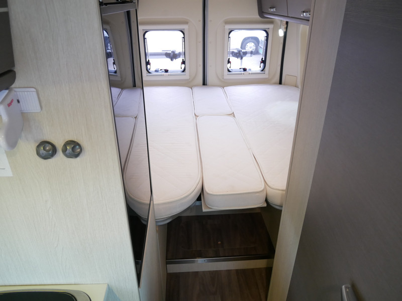 Maten: de camper heeft een stahoogte van 189 cm, lengtebedden links: 190 X 90 cm, rechts: 180 X 90 cm, volledige breedte: 195 cm.