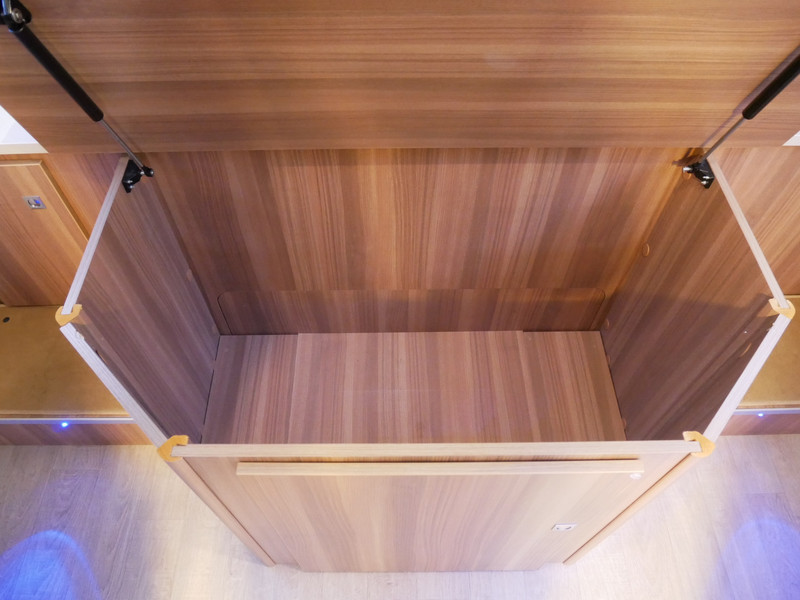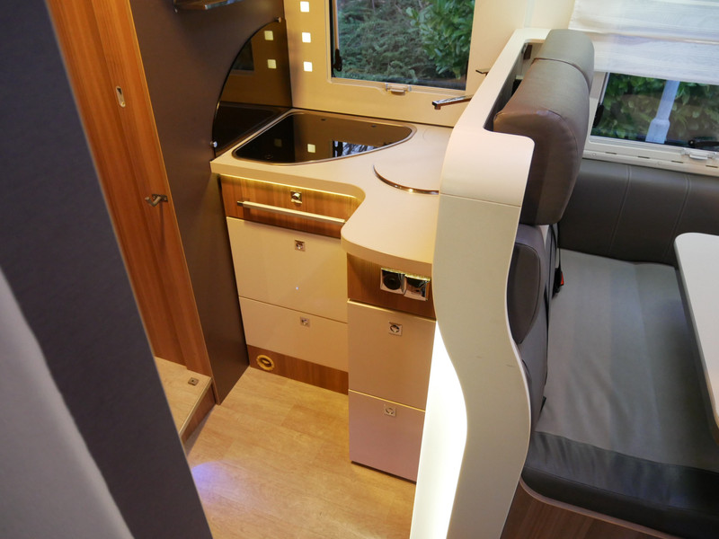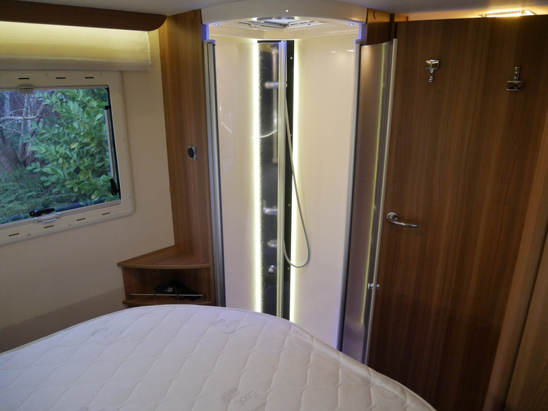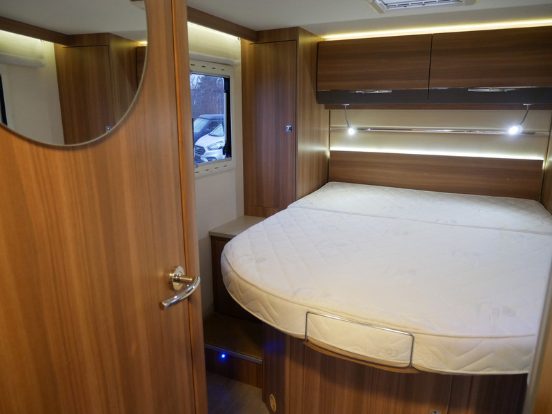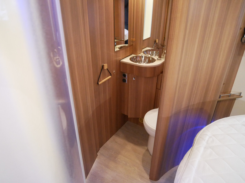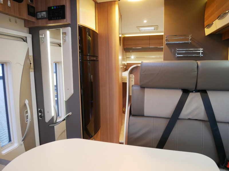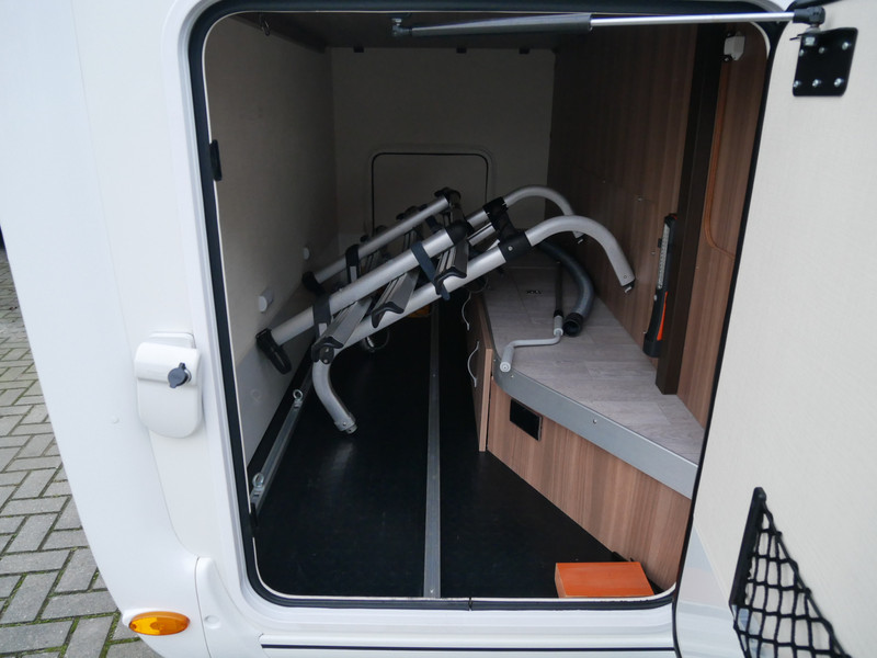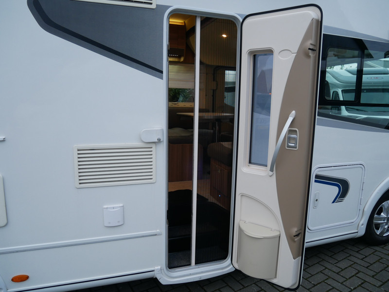 De camper is onder andere voorzien van een mooie en luxe afwerking met stoffen bekleding, ruime keuken met 3 pits kooktoestel, houttinten in het interieur, wasbak, hordeur entree, XL Entreedeur, motorairco, groot queensbed, hefbed, navigatie, bluetooth functie, XXL Koelkast met groot vriesvak, draaibare voorstoelen, zeer veel opbergmogelijkheden in de vele kasten, ruime toiletruimte gescheiden van de douche ruimte, rondzit met grote tafel en een garage met serviceluik aan de linker en rechter buitenzijde.