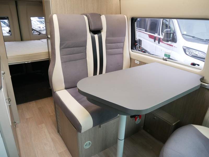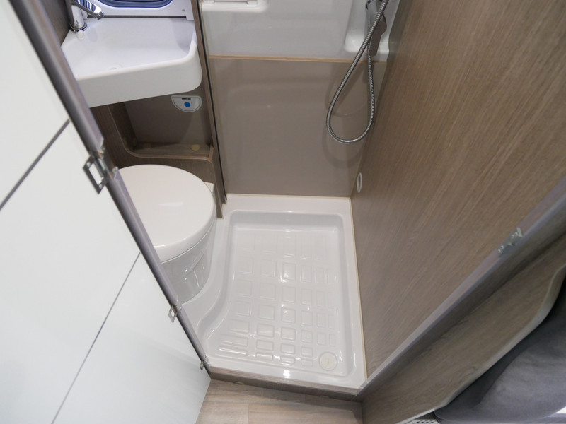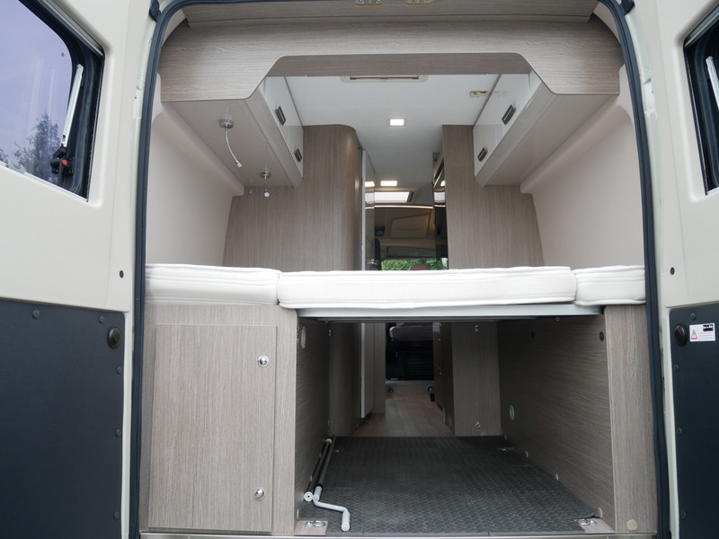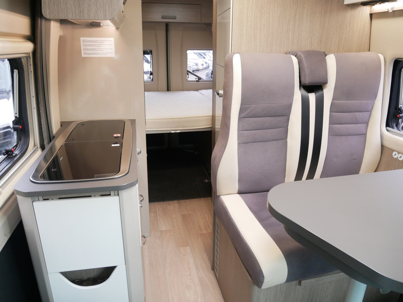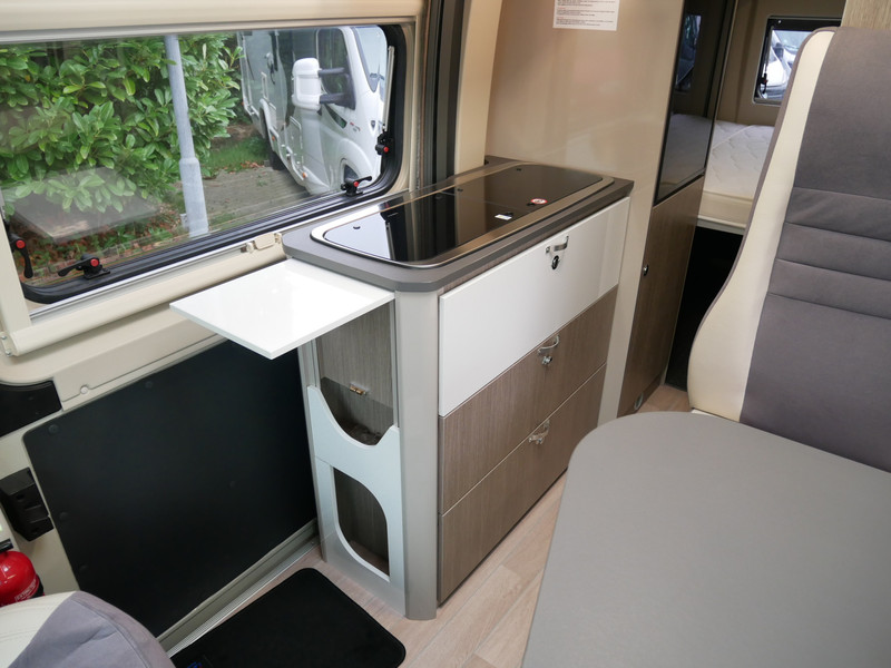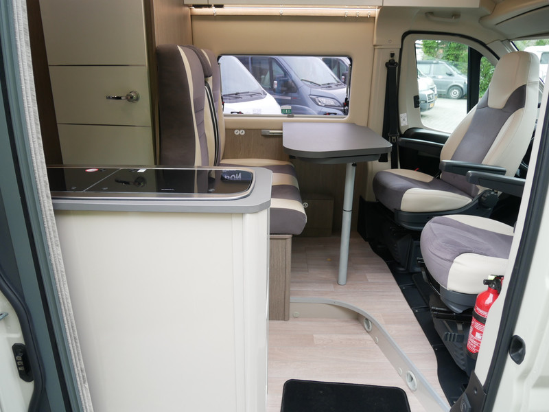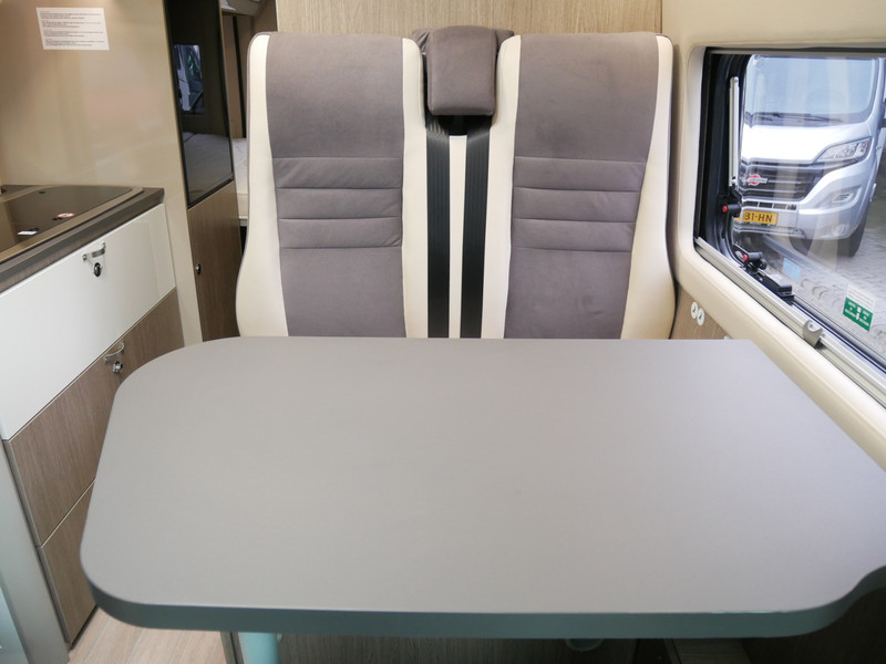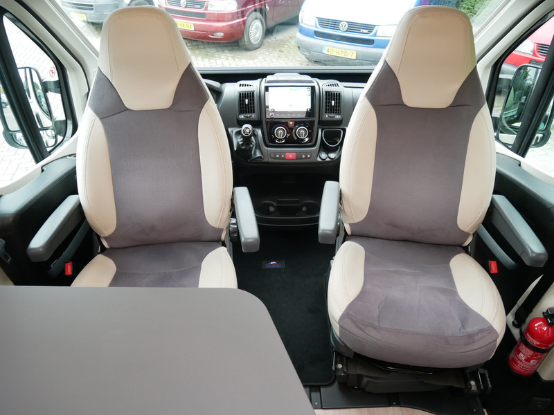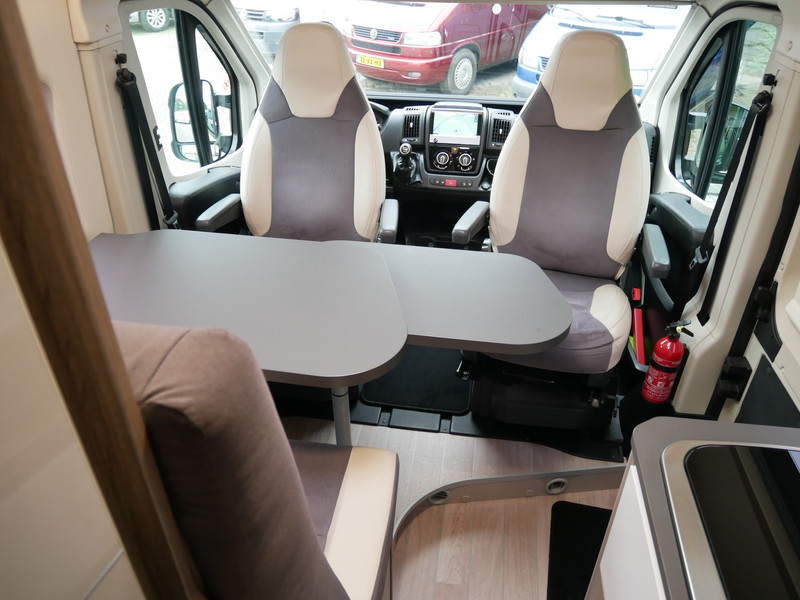 De camper is onder andere voorzien van een prachtige afwerking zoals half lederen bekleding, keuken met 2 pits kooktoestel, dwarsbed, cruise control, navigatie, achteruitrijcamera, Truma kachel op diesel, boiler op diesel, koelkast met apart vriesvakje, modern en licht ogende tinten in het interieur, wasbak, airco, zeer veel opbergmogelijkheden door de velen bovenkasten, toiletruimte met doucheruimte, hordeur entree, een ruime zit met tafel en verduistering rondom.