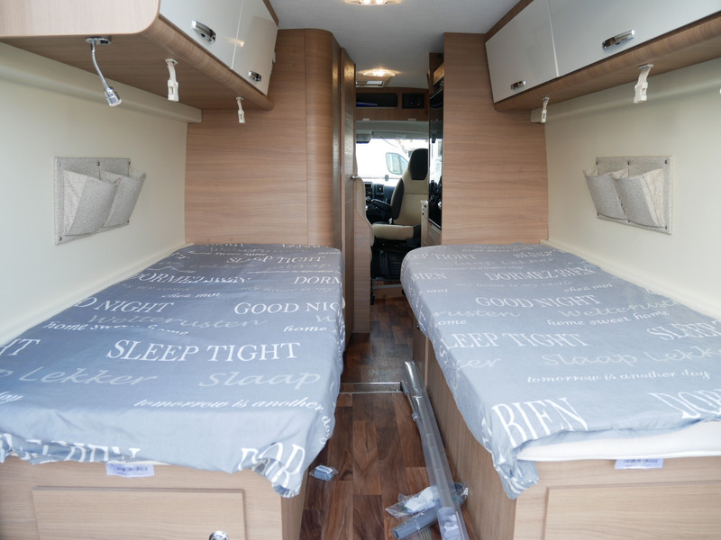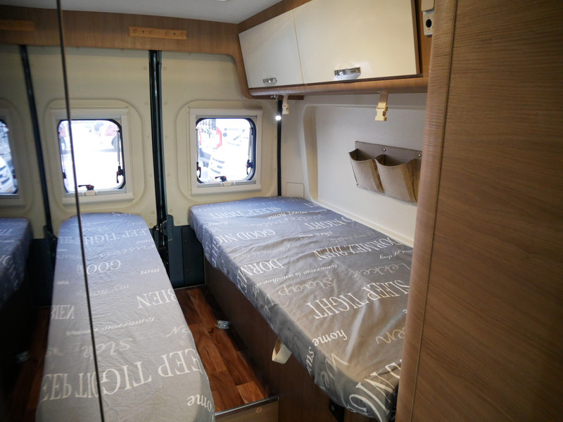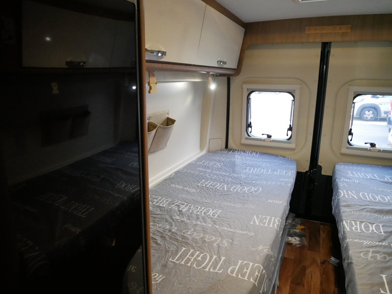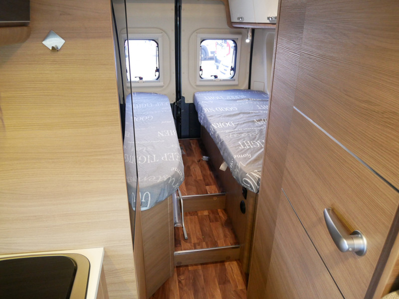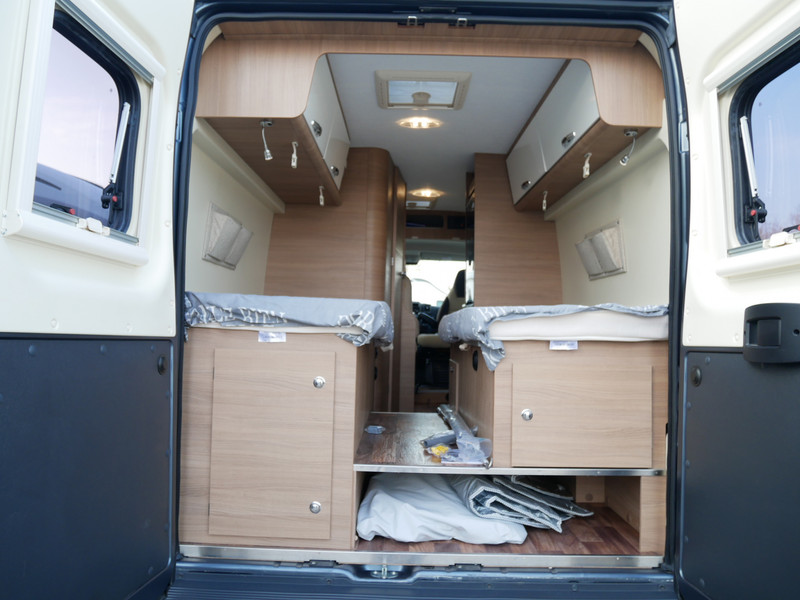 Maten: De camper heeft een stahoogte van 190 cm en lengtebedden: links 200 X 80 cm en rechts 195 X 80 cm.