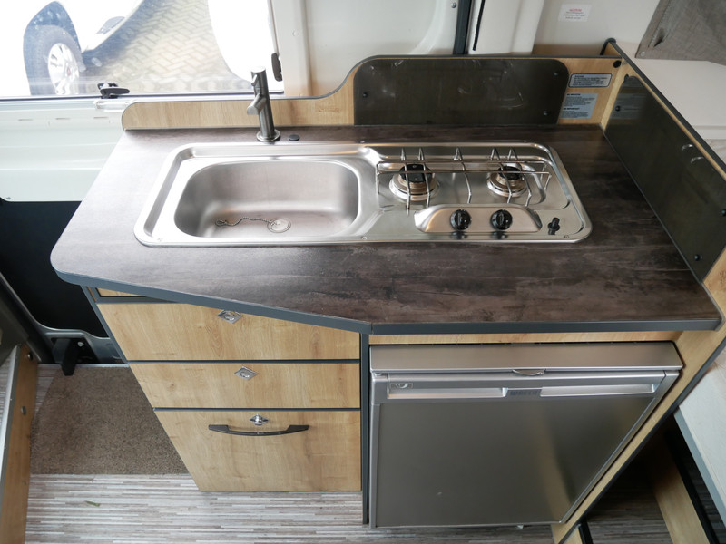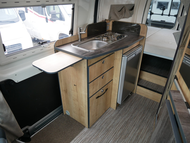 De camper is onder andere voorzien van een goede afwerking met stoffen bekleding, keuken met 2 pits kooktoestel, dwarsbed, cruise control, Truma kachel op gas, boiler op gas, compressor koelkast met apart vriesvak, licht ogende houttinten in het interieur, wasbak, motorairco, zeer veel opbergmogelijkheden door de vele bovenkasten, toiletruimte met doucheruimte, bluetooth radio en verduistering in het campergedeelte.