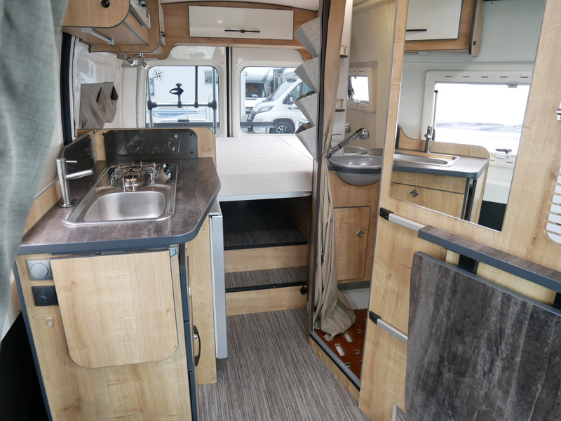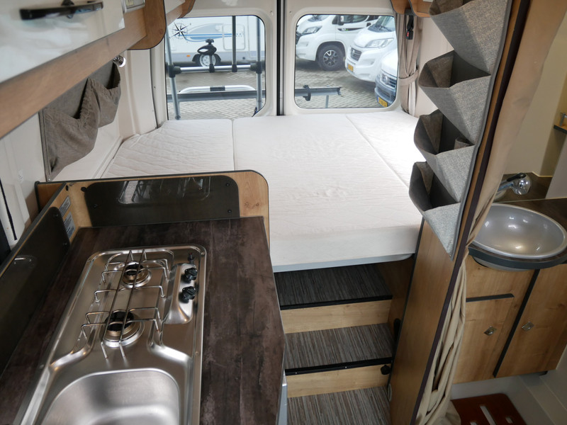 Maten: de camper heeft een stahoogte van 185 cm en het dwarsbed 135 X 190 cm.