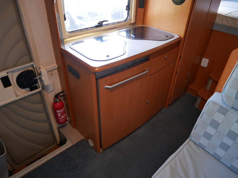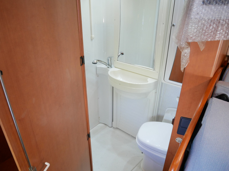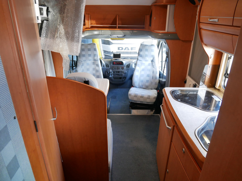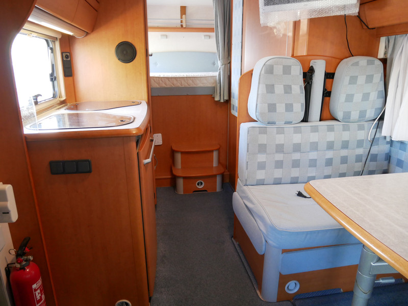 De camper is onder andere voorzien van een nette afwerking met lichte stoffen lederen bekleding, luifel, bluetooth functie, radio/cd/mp-3 speler, ruime keuken met 3 pits kooktoestel, mooie en lichte houttinten in het interieur, wasbak, hordeur entree, airco, dwarsbed (145 X 215 cm), zeer veel opbergmogelijkheden in de vele bovenkasten en de grote kast ruimtes, ruime toiletruimte samen met een douche ruimte, een ruime treinzit met grote tafel en een garage met serviceluik aan de rechter en linker buitenzijde.
