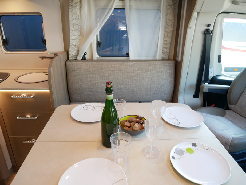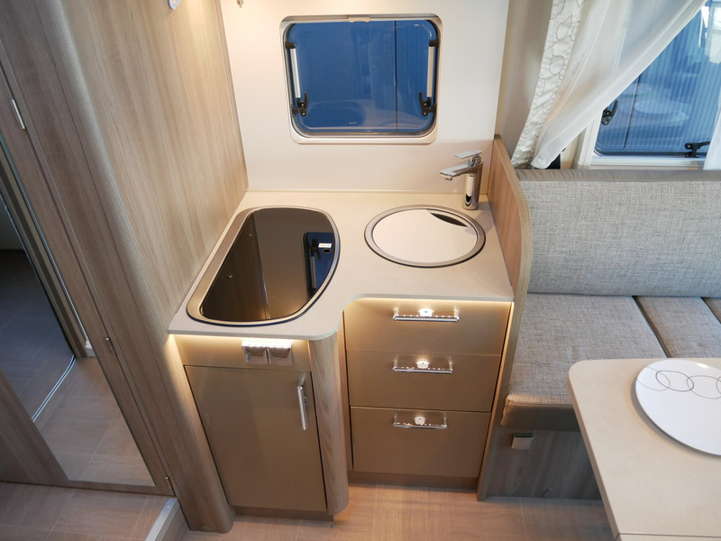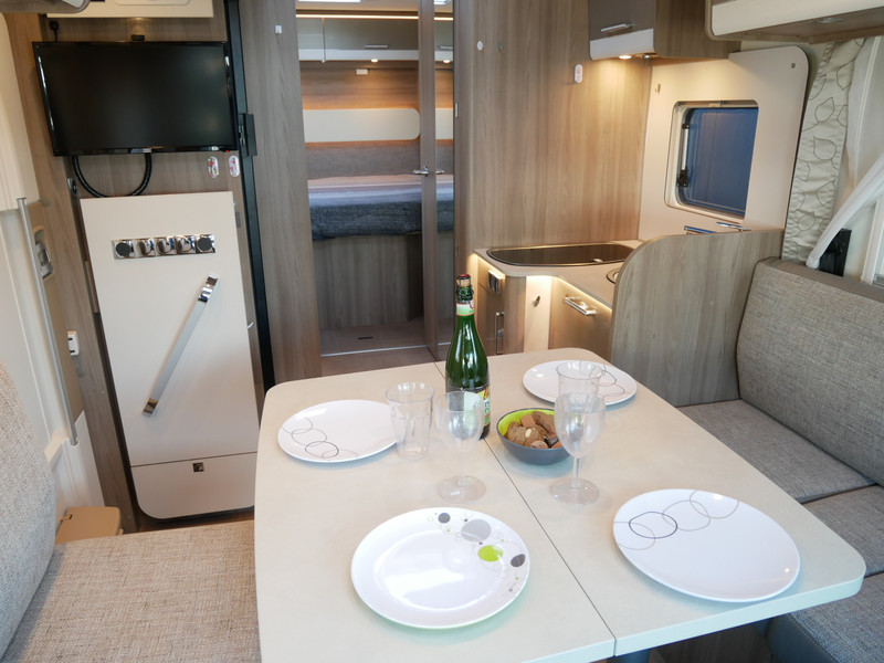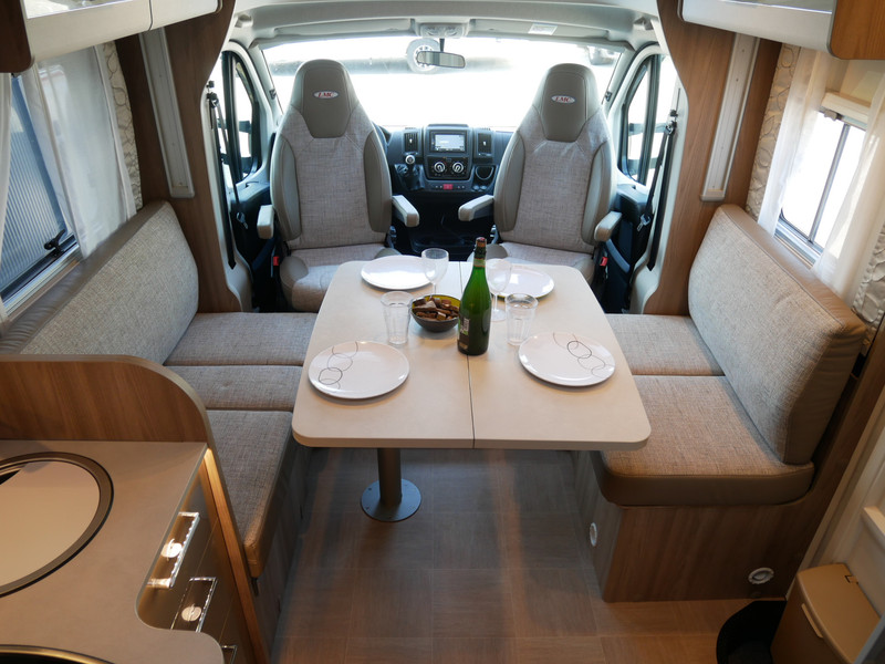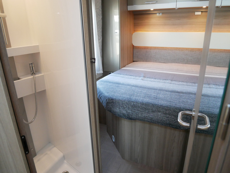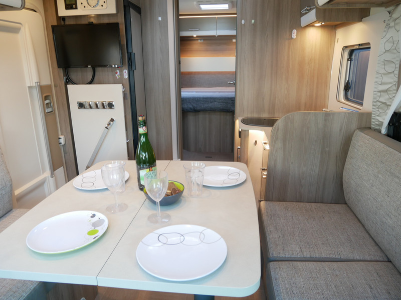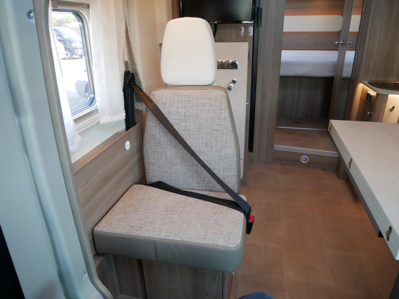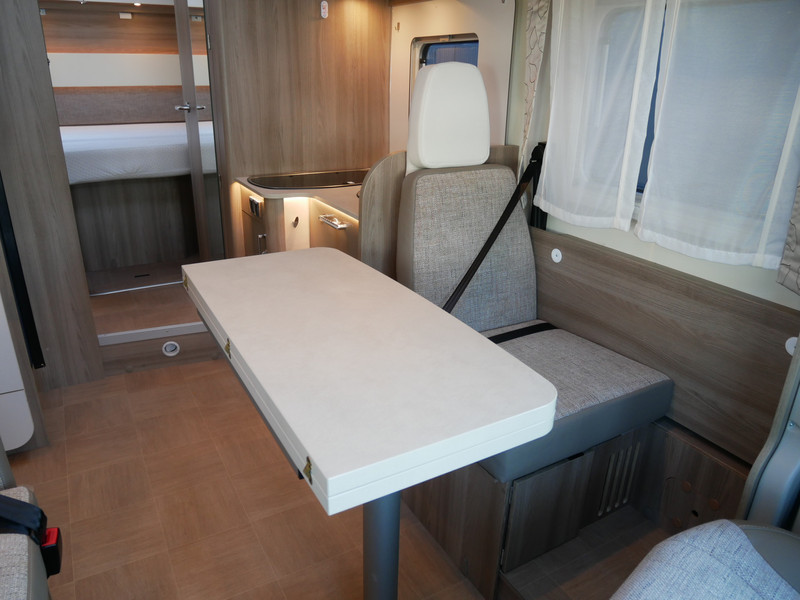 De camper is onder andere voorzien van een mooie afwerking met stoffen bekleding, face to face zit, licht en luxe ogende houtlook in het interieur, grote en ruime keuken met 3 pits kooktoestel, wasbak, XXL koelkast, XL entreedeur, Queensbed, elektrisch midden hefbed, motorairco, cruise control, kachel op gas, boiler op gas, zeer veel opbergmogelijkheden door de vele kasten, aparte douche en toilet ruimte, navigatie, achteruitrijcamera en een garage met serviceluik aan beide zijkanten.