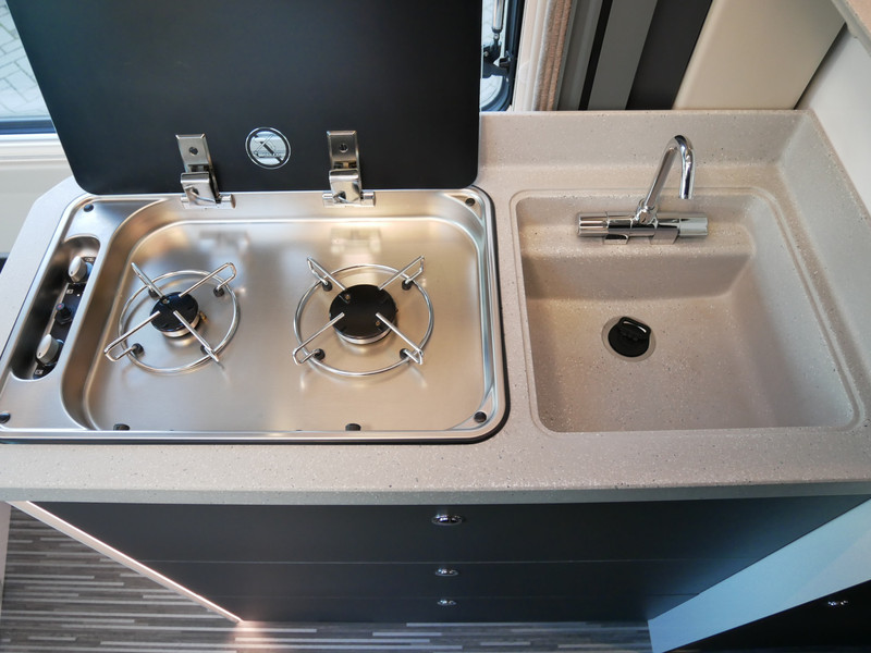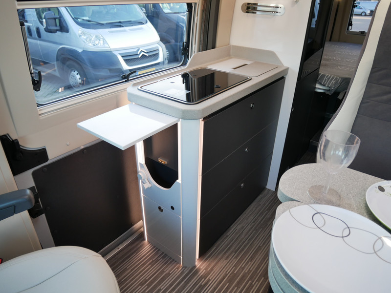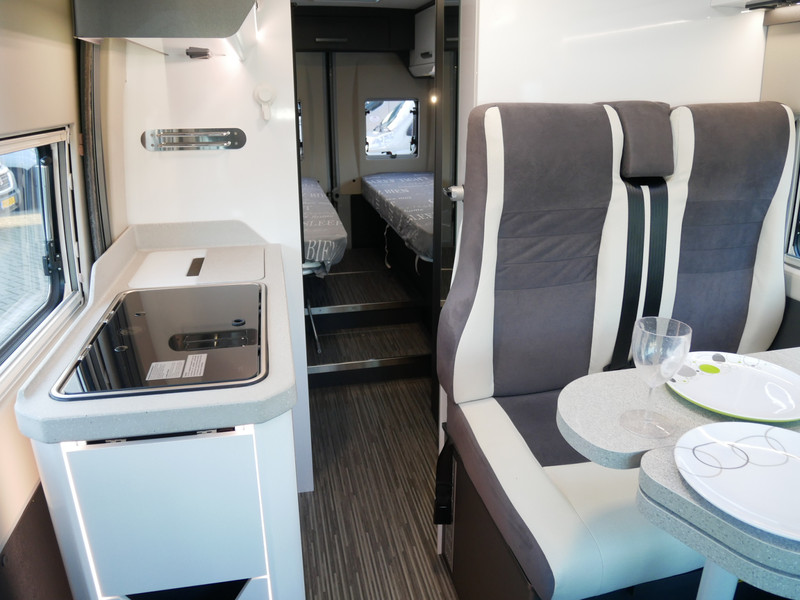 De Prestige uitvoering is rijk uitgerust met onder andere: keuken met 2 pits kooktoestel, wasbak, koelkast, hordeur entree, lengtebedden, motorairco, Truma boiler en kachel op diesel, cruise control, zeer veel opbergmogelijkheden door de vele kasten, badkamer met douche en toilet, bluetooth, mooie lichte accenten, achteruitrijcamera, zonnepaneel en cassetteluifel.