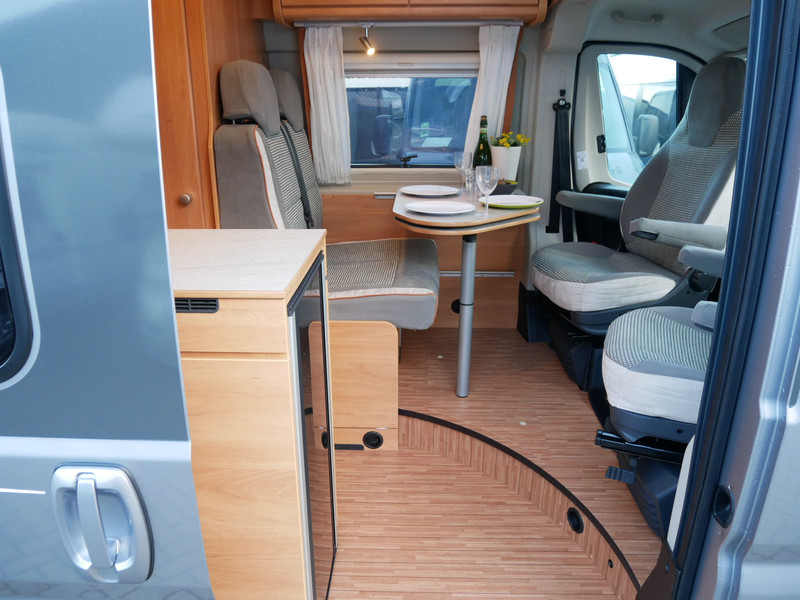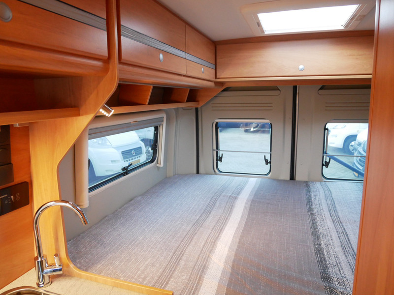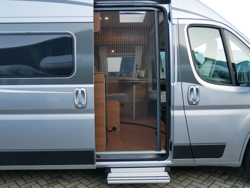 De camper is onder andere voorzien van een zeer luxe afwerking zoals mooie stoffen bekleding, luxe en prachtige keuken met 2 pits kooktoestel, truma kachel op gas, boiler, luxe donkere houttinten in het interieur, wasbak, motorairco, zeer veel opbergmogelijkheden door de vele kasten, toiletruimte met douche, radio/cd/mp-3 speler, verduistering rondom, een ruime zit met tafel en een prachtige metallic lak!
