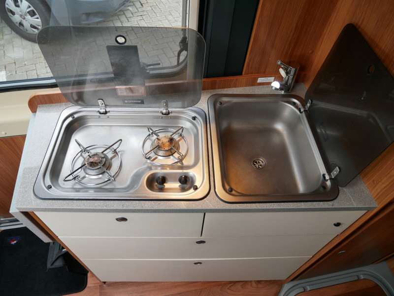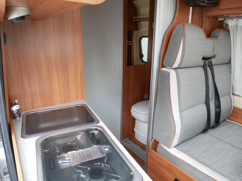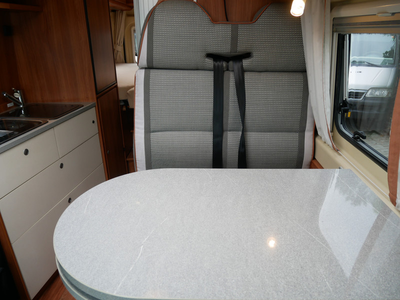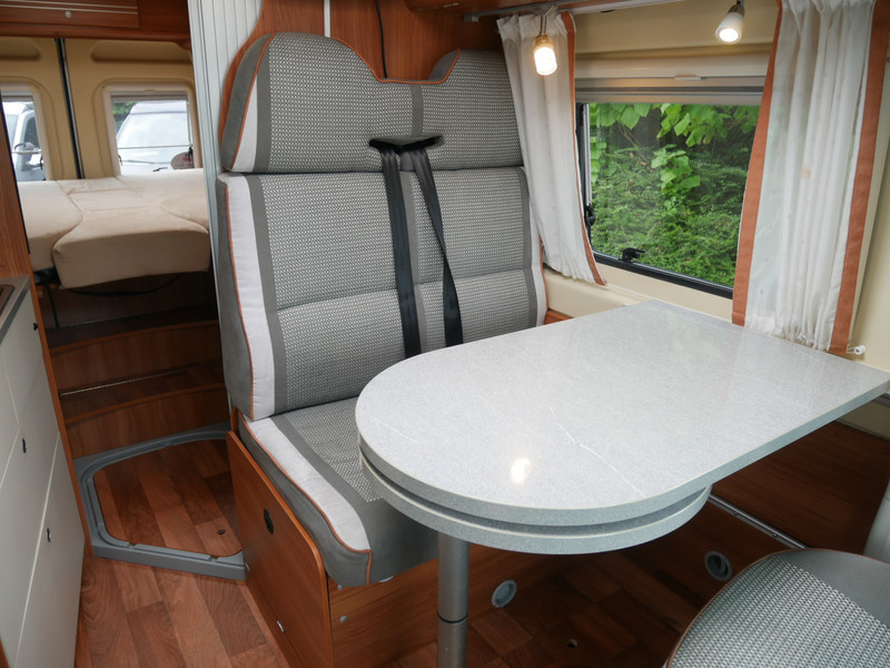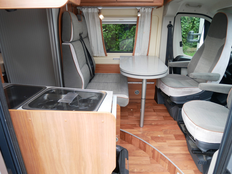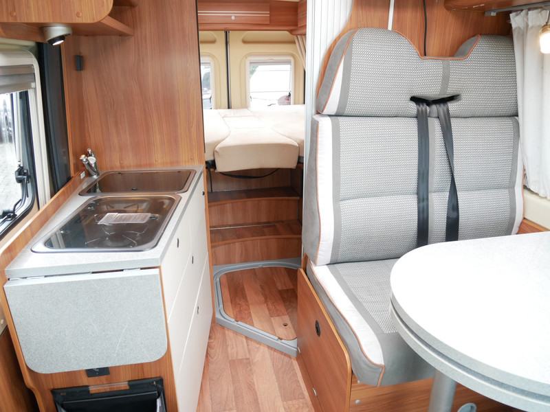 De camper is onder andere voorzien van een nette afwerking met stoffen bekleding en modern en luxe ogende houttinten in het interieur, keuken met 2 pits kooktoestel, lengtebedden, cruise control, Truma kachel op gas, boiler op gas, koelkast met een apart vriesvak, wasbak, motorairco, zeer veel opbergmogelijkheden door de vele bovenkasten, toiletruimte met doucheruimte, hordeur, een ruime zit met tafel en verduistering rondom.
