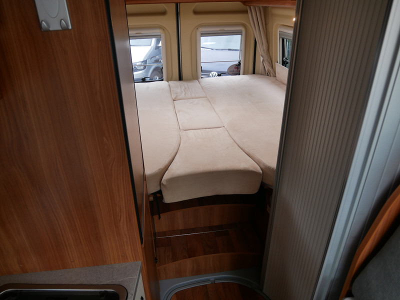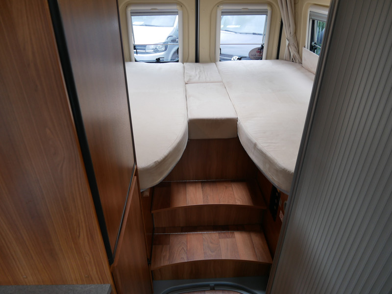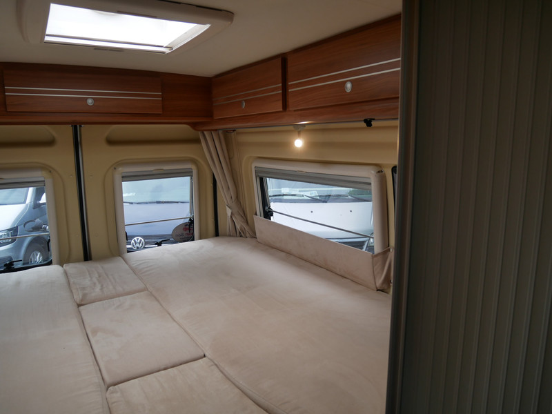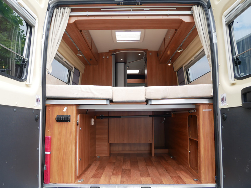 Maten: De camper heeft een stahoogte van 190 cm en lengtebedden: links 190 X 80 cm rechts 195 X 80 cm en volledige breedte 195 cm.
