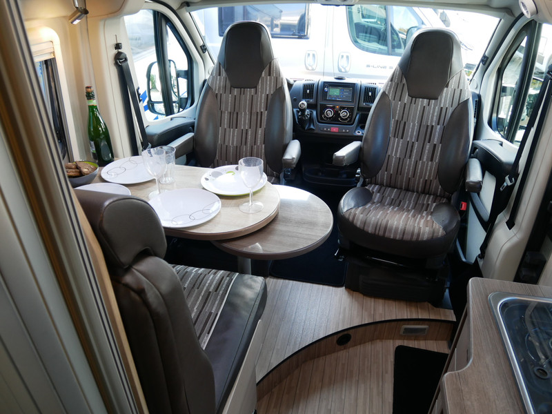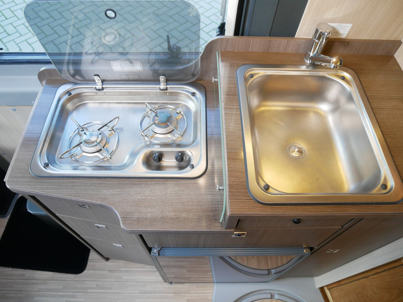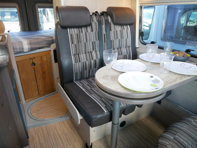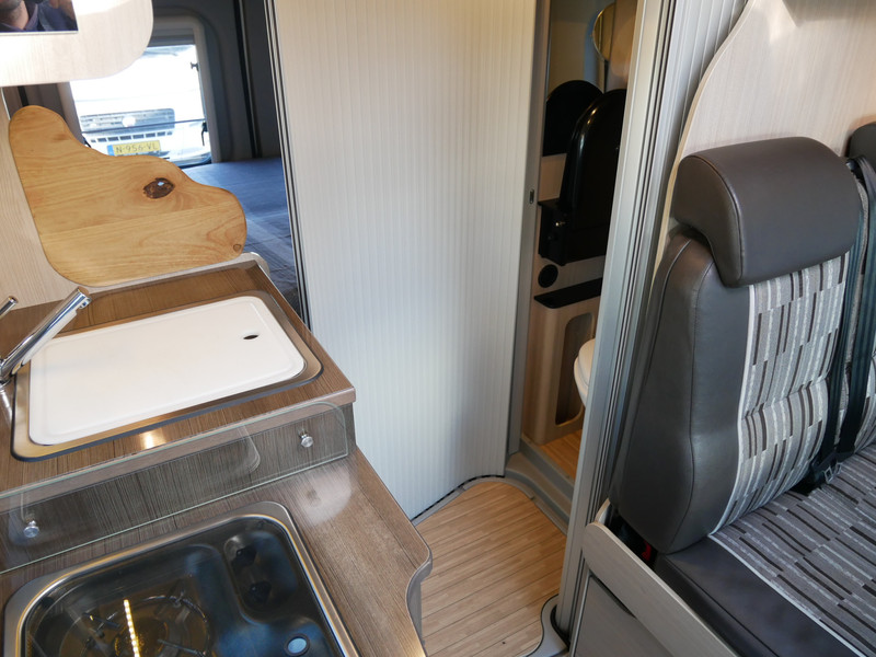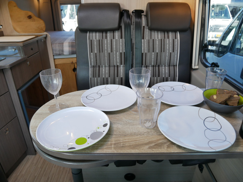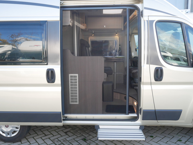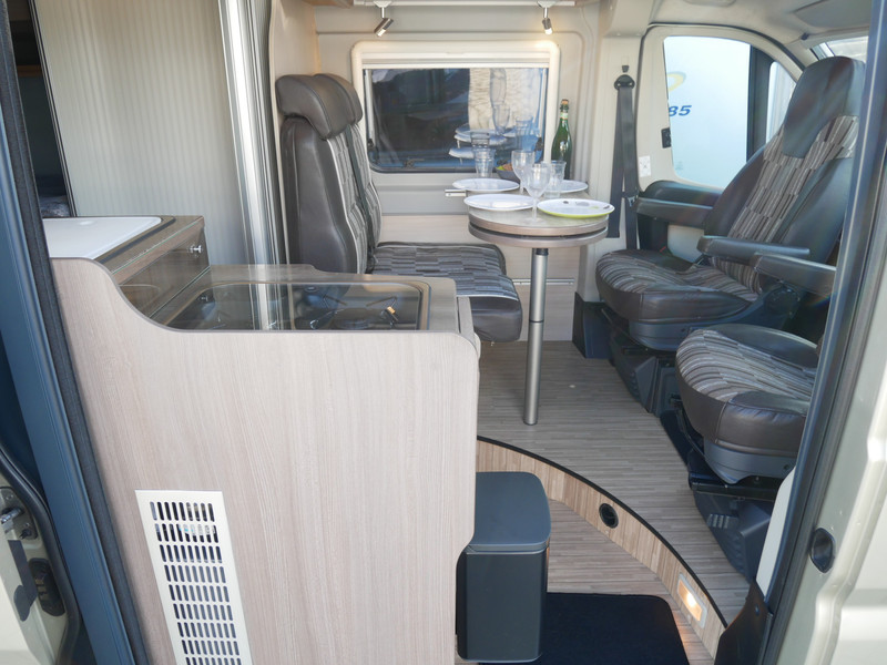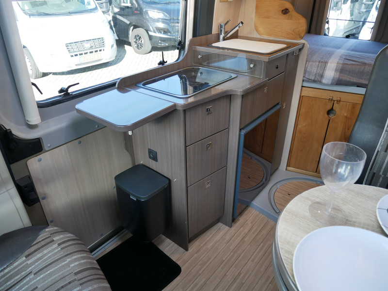 De camper is onder andere voorzien van een mooie afwerking met half lederen bekleding, luxe keuken met 2 pits kooktoestel, Truma kachel op gas, boiler, lichte moderne houttinten in het interieur, wasbak, motorairco, zeer veel opbergmogelijkheden door de vele kasten, toiletruimte met douche, radio/cd/mp-3 speler, verduistering rondom, een ruime zit met tafel en een metallic lak!