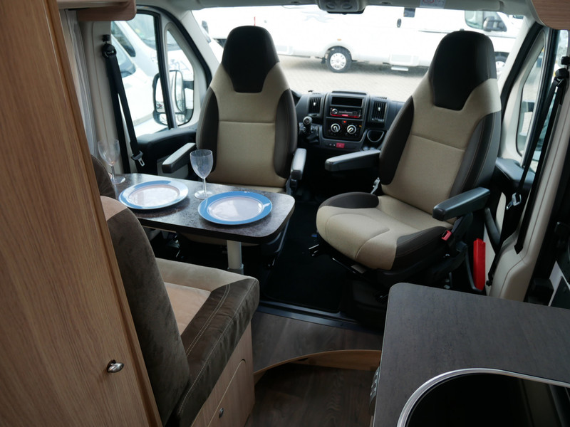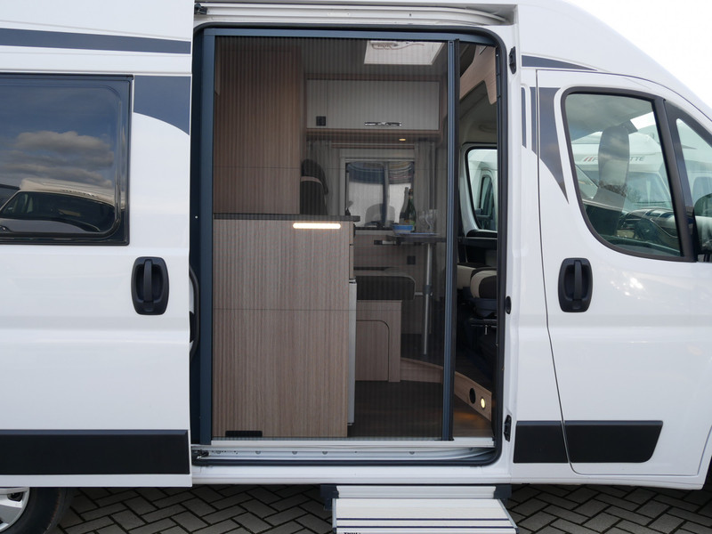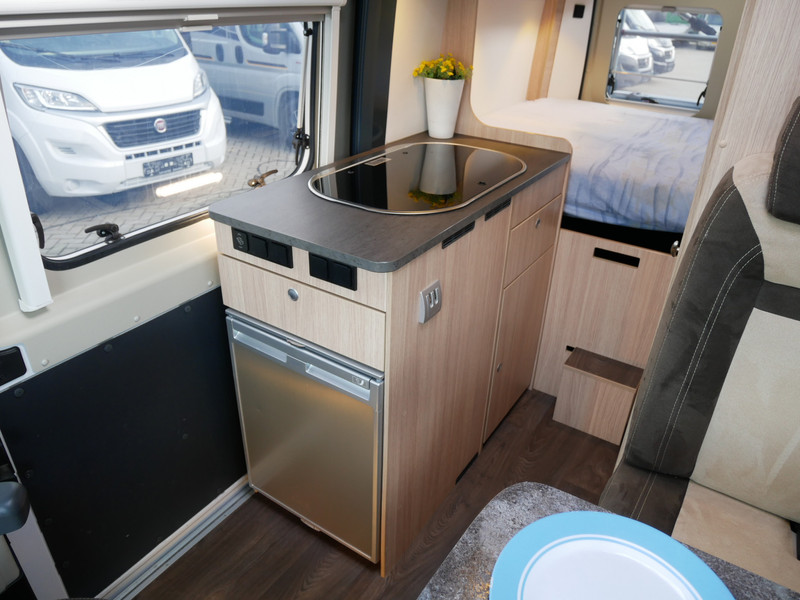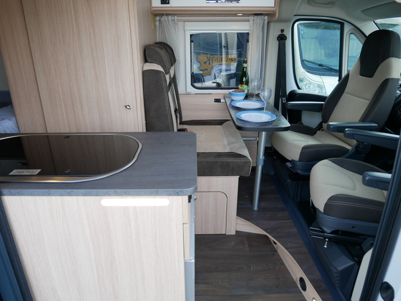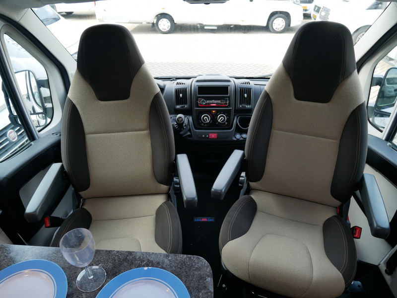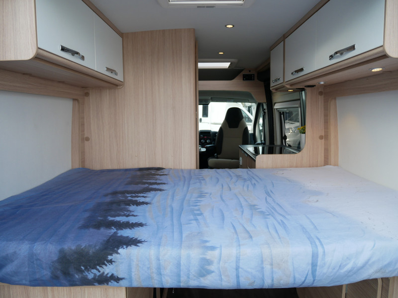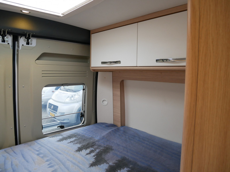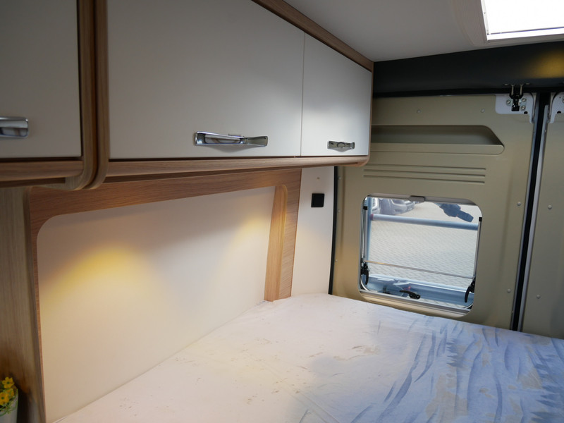 De camper is onder andere voorzien van een mooie afwerking met stoffen bekleding, keuken met 2 pits kooktoestel, dwarsbed, truma kachel op gas, boiler, compressor koelkast, modern en licht ogende houttinten in het interieur, binnenverlichting, wasbak, airco, zeer veel opbergmogelijkheden door de zeer vele bovenkasten, toiletruimte met douchecel, een zit met tafel, luifel, radio/cd/mp-3 speler en motorairco.