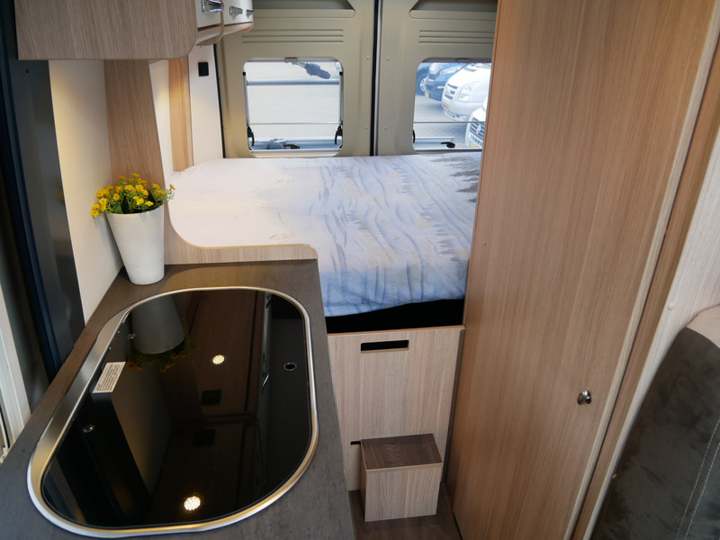 Maten: De camper heeft een stahoogte van 190 cm en dwarbed 135 X 195 cm.