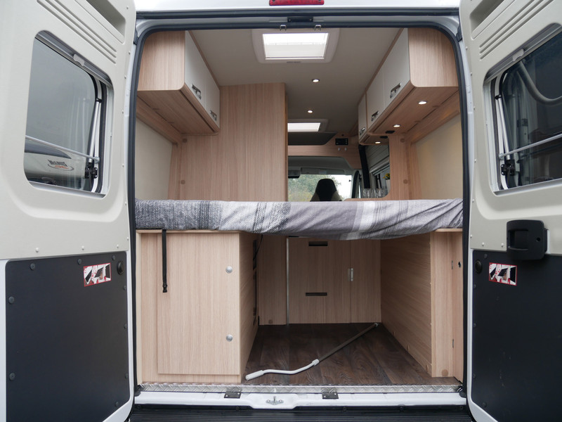 Maten: De camper heeft een stahoogte van 190 cm en dwarbed 135 X 195 cm.