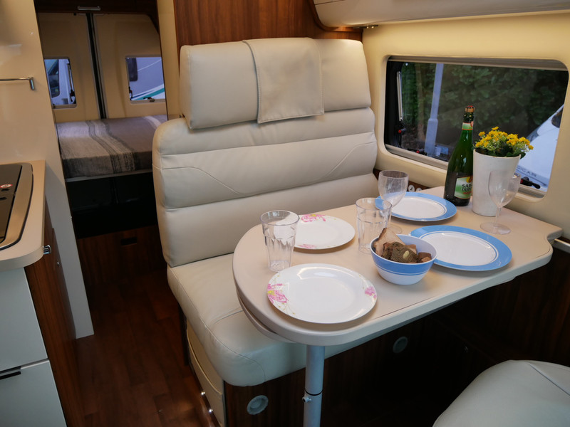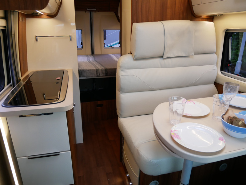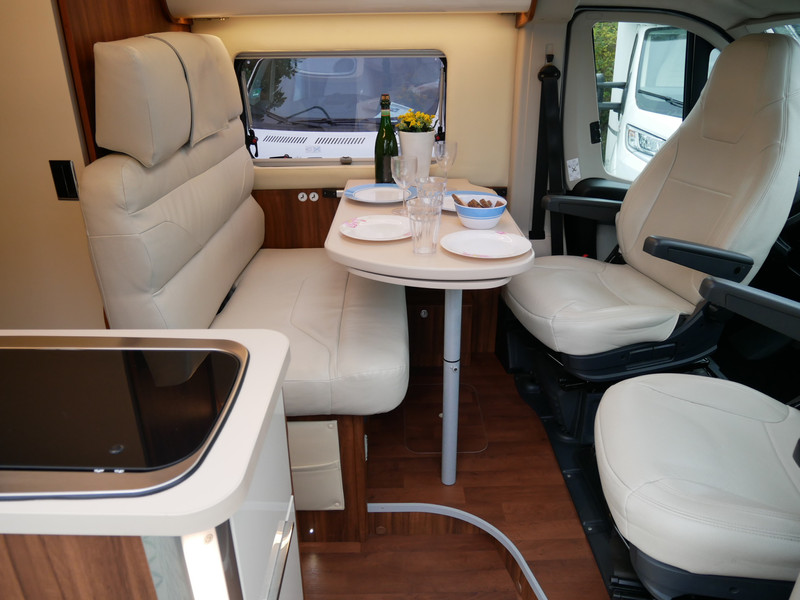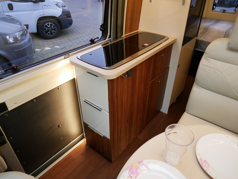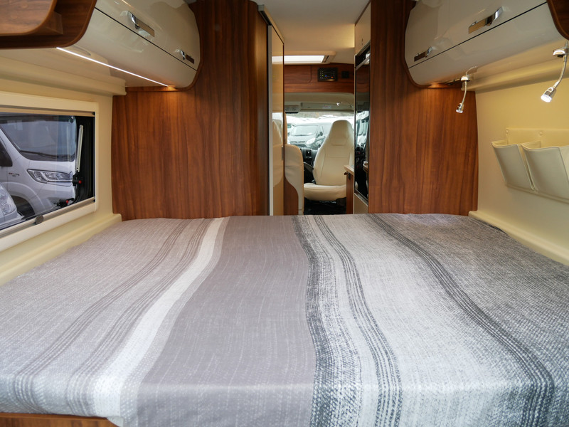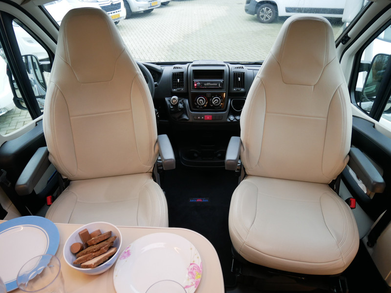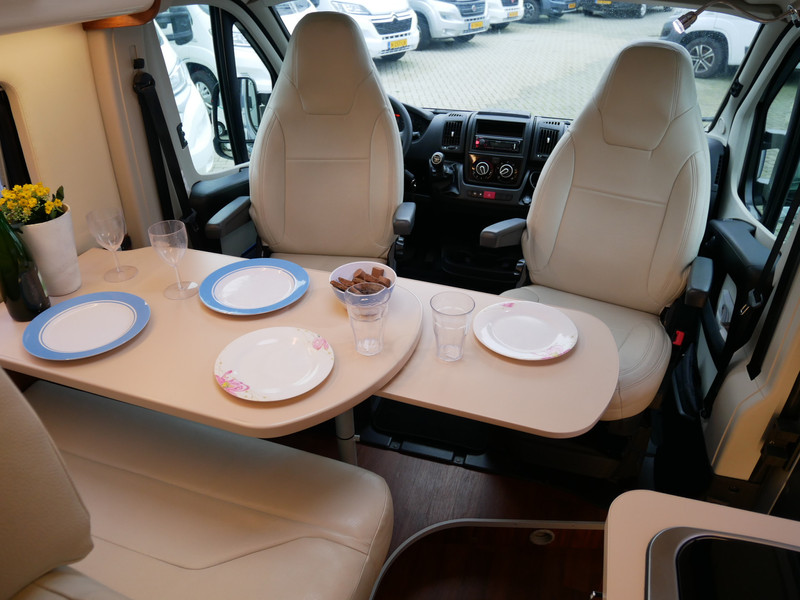 De camper is onder andere voorzien van een fijne indeling met onder andere: lederen bekleding, keuken met 2 pits kooktoestel, dwarsbed, cruise control, Truma combiketel op gas, kachel op gas, boiler op gas, koelkast, modern en lichte houttinten in het interieur, wasbak, motorairco, zeer veel opbergmogelijkheden door de vele bovenkasten, toiletruimte met doucheruimte, radio/cd/mp-3 speler, bluetooth, een ruime zit met tafel en verduistering in het campergedeelte.