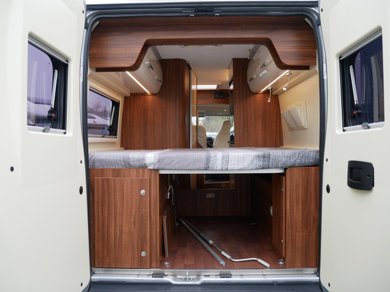 Maten: De camper heeft een stahoogte van 188 Cm en het dwarsbed 145 X 195 Cm .