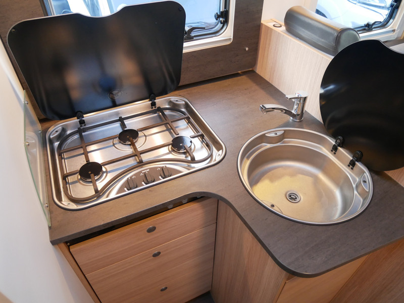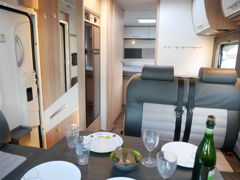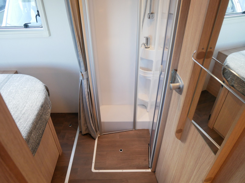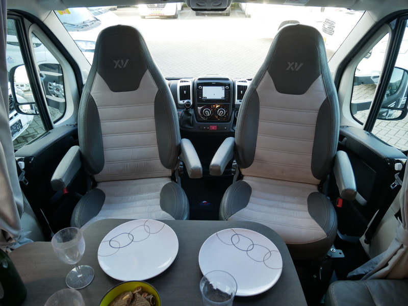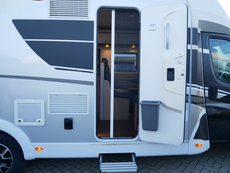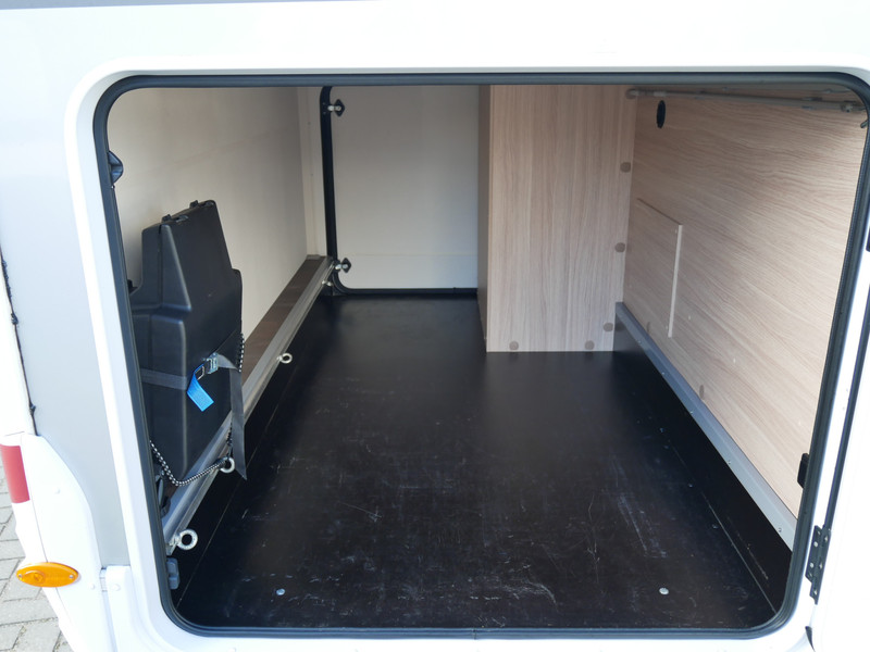 Deze camper is verder voorzien van motorairco, 9-traps automaat, cruise control, radio/mp3 speler, een toilet met wasruimte en gescheiden doucheruimte, 3 pits kooktoestel, koelkast, parkeercamera achter, hordeur entree, fietsendrager, zonnepaneel, kachel op gas, dak airco, achterin een queensbed (150 X 150 cm), veel opbergruimten door middel van boven kasten en een garage met een deur links en rechts zodat spullen in 1x geplaatst kunnen worden.