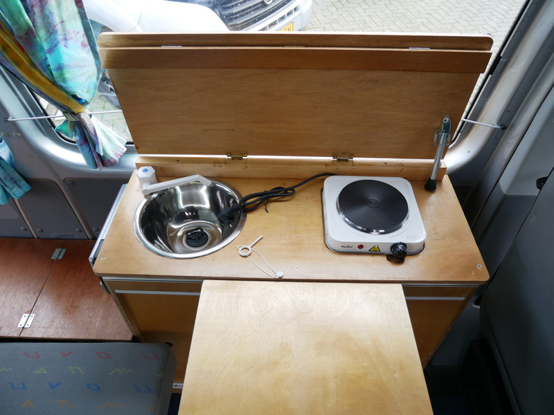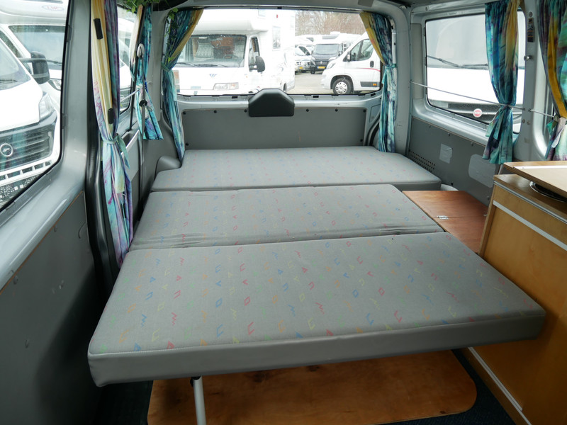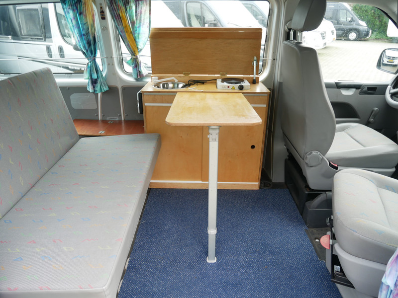 Het betreft een basiscamper met daarin basis voorzieningen als: slaaphefdak, keukenblok met een 1 pits kooktoestel en wasbak, vuil en schoonwater jerrycans, 2 zit achterbank, 2 persoons bed in het dak, eettafel.