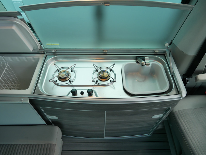 De buscamper is onder andere voorzien van 4 slaapplaatsen, DSG Automaat, slaaphefdak, airco, draaibare voorstoelen, stoffen bekleding, elektrische ramen voor, elektrisch verstelbare spiegels, huishoud accu, 220 V aansluiting, parkeersensoren voor en achter, 2 pits gastoestel, bluetooth, stoelverwarming, wasbak, stand kachel op diesel, navigatie, Apple carplay / Android Auto en koelkast.