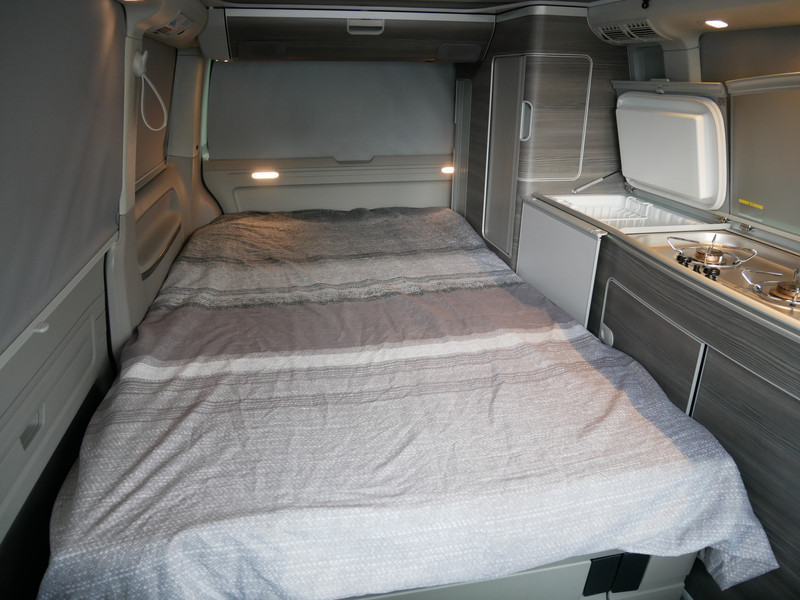 De buscamper is onder andere voorzien van 4 slaapplaatsen, elektrisch slaaphefdak, automatische airco, stoffen bekleding, elektrische ramen voor, radio cd/mp3 speler, apple carplay en android auto, bluetooth functie, elektrisch verstelbare spiegels, parkeercamera achter, parkeersensoren voor en achter, huishoud accu, 220 V aansluiting, stoelverwarming, 2 pits gastoestel, trekhaak, wasbak en stand kachel op diesel.