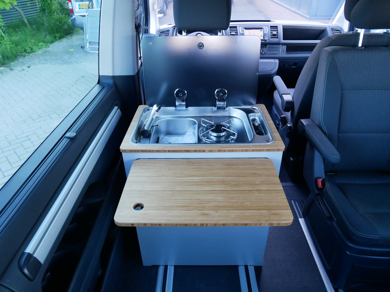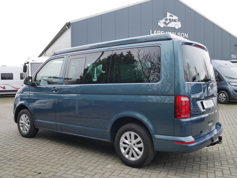 De buscamper is onder andere voorzien van 4 slaapplaatsen, Easy fit slaaphefdak van Reimo met het luxe bed (schotels), airco, stoffen bekleding, zeer mooie mica lak (groen / blauw), elektrische ramen voor, elektrisch verstelbare spiegels, parkeersensoren voor en achter, in hoogte verstelbare voorstoelen, bluetooth functie, navigatie, keukenblok, 1 pits gastoestel en wasbak.