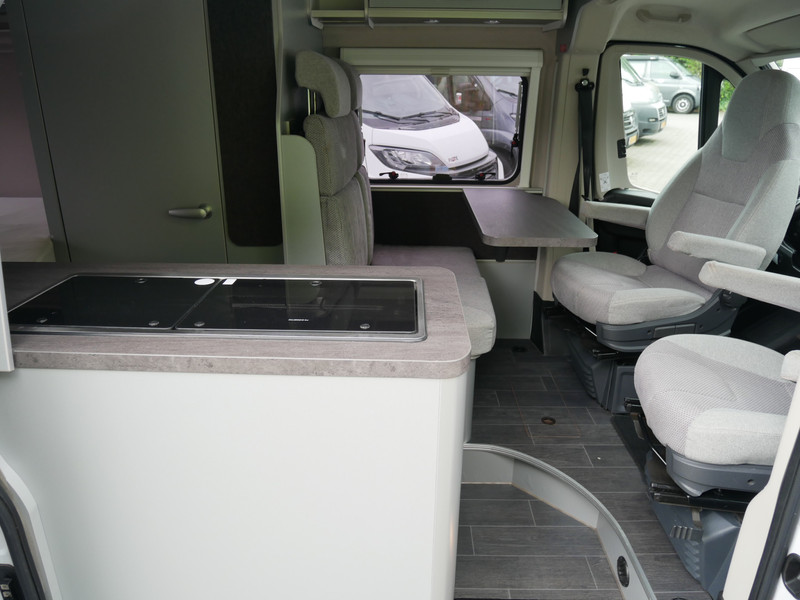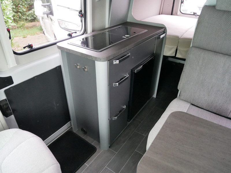 De camper is onder andere voorzien van een nette afwerking met stoffen bekleding, keuken met 2 pits kooktoestel, dwarsbed, slaaphefdak, cruise control, Truma kachel op gas, boiler op gas, compressor koelkast, modern en luxe ogende tinten in het interieur, wasbak, motorairco, zeer veel opbergmogelijkheden door de vele bovenkasten, toiletruimte met douche, een ruime zit met tafel, radio/cd/mp-3 speler, bluetooth, navigatie, Apple Carplay en Android Auto, achteruitrijcamera, trekhaak en verduistering rondom.
