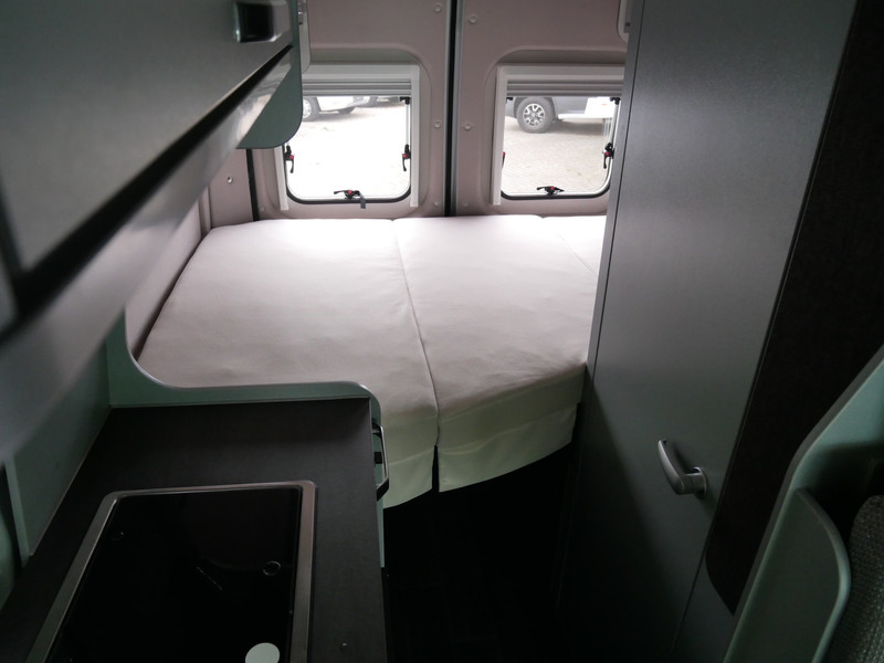 Maten: De camper heeft een stahoogte van 189 cm, dwarsbed: 135 x195 cm en het hefbed 130 X 200 cm.