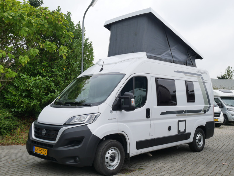 De flexibiliteit en ruimte van een gewone 5.40 meter buscamper, maar dan voor 4 personen? Dat is deze unieke Weinsberg CaraTour met een hefdak af fabriek.