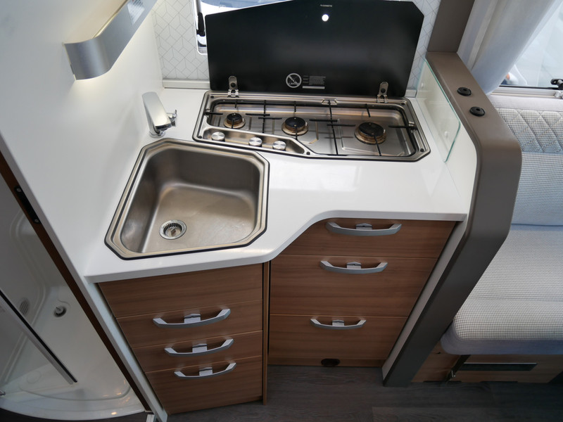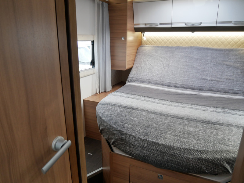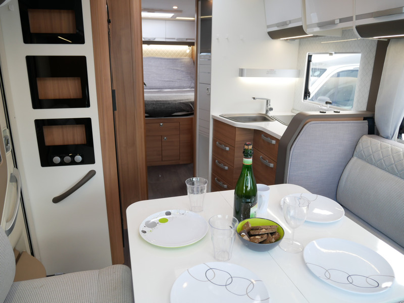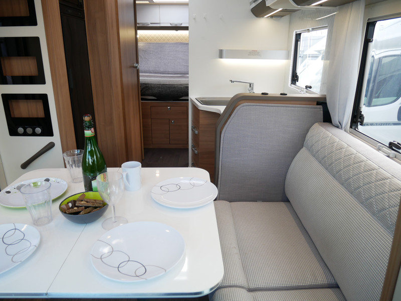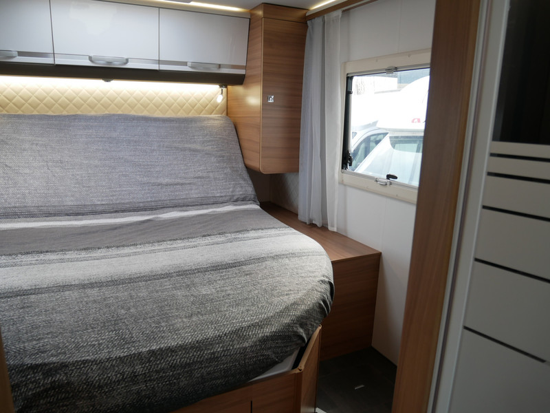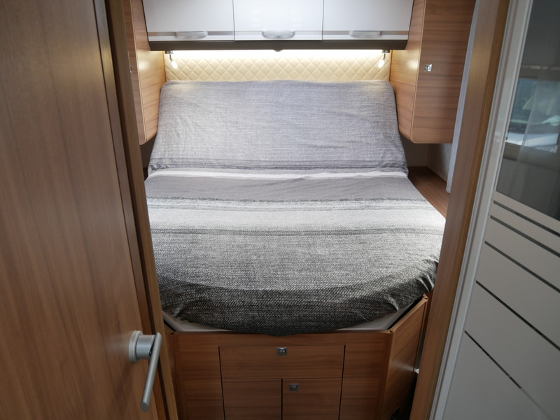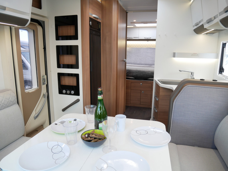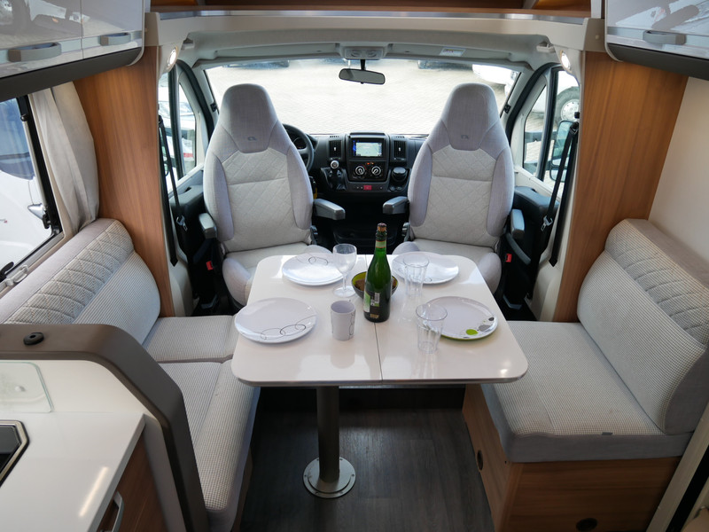 Deze luxe camper is onder andere voorzien van een zeer verfijnde afwerking met mooie stoffen bekleding, ruime Face -to- Face zit zit met verschuifbare / inklapbare tafel, luxe ruime keuken met 3 pits kooktoestel, wasbak, XXL koelkast, mooie en luxe ogende houttinten in het interieur, aparte wc ruimte, aparte douchecabine, ruim queensbed, zeer veel opbergmogelijkheden door de grote kasten en de vele bovenkasten, rondom verduistering en vliegenhorren voor de ramen, hordeurentree, Truma combiketel op gas (verwarming en warm water) cruise control, motorairco, verduistering in de voorcabine, navigatie, bluetooth, radio/cd/mp-3 speler en een XXL garage met serviceluik aan de rechter en linker buitenzijde.