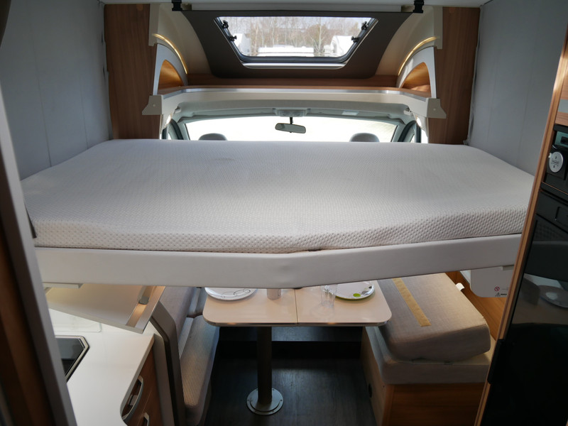 Maten: de camper heeft een stahoogte van 198 cm onder het hefbed, queensbed: 150 X195 Cm en elektrisch hefbed: 130 X 195 Cm.