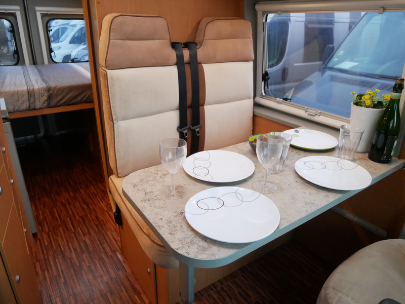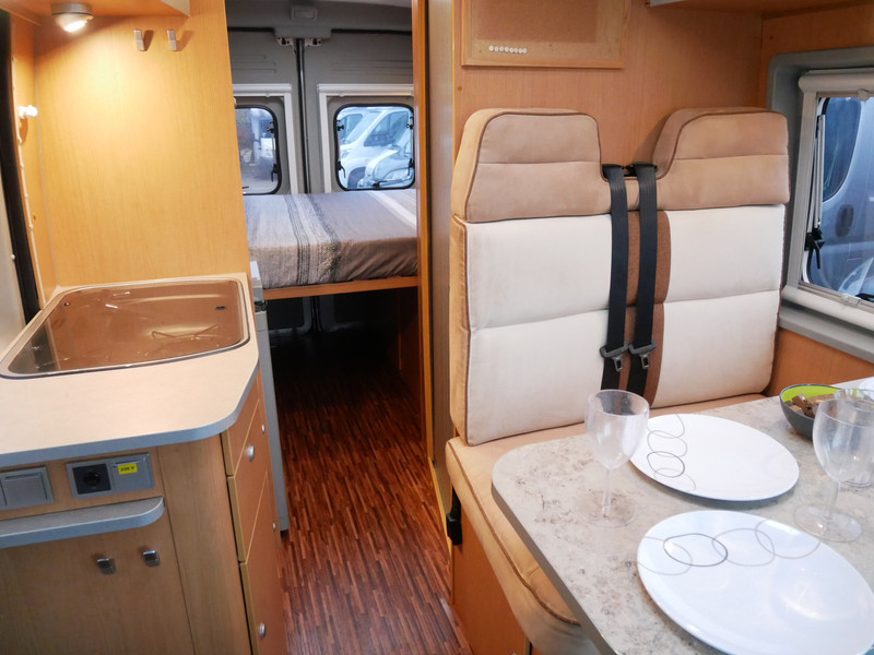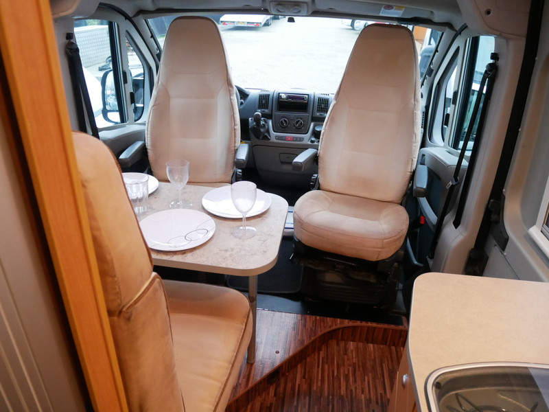De camper is onder andere voorzien van een nette afwerking met stoffen bekleding, keuken met 2 pits kooktoestel, dwarsbed, cruise control, Webasto combi boiler op diesel, kachel op diesel, koelkast met apart vriesvakje, lichte tinten in het interieur, wasbak, motorairco, zeer veel opbergmogelijkheden door de vele kasten, toiletruimte met schuifdeur, een ruime zit met tafel en verduistering rondom.