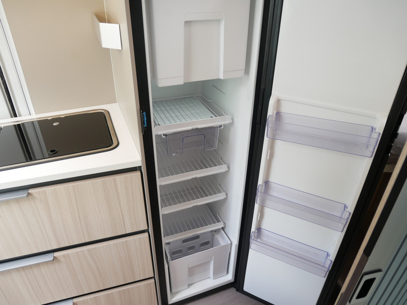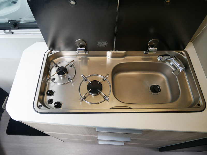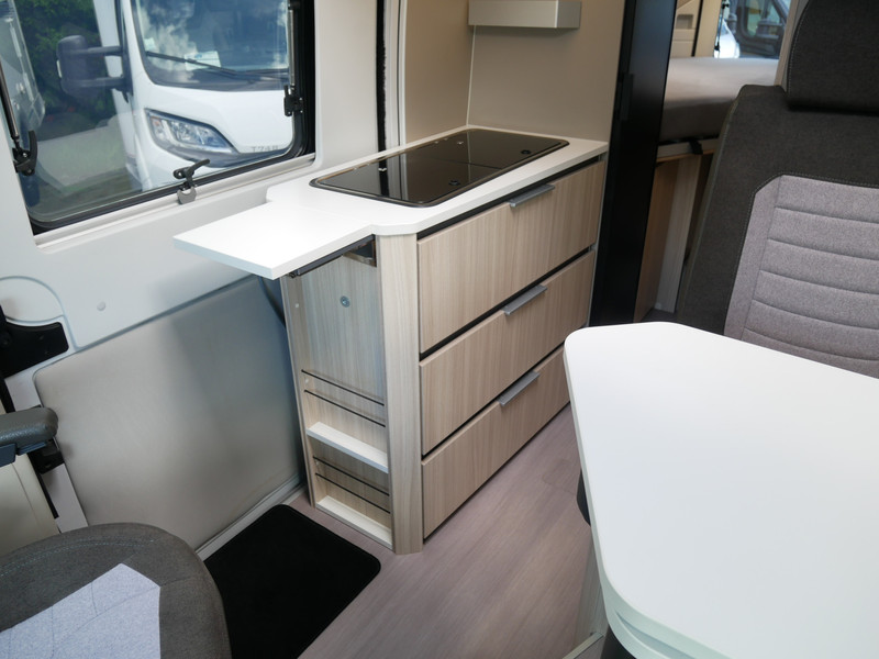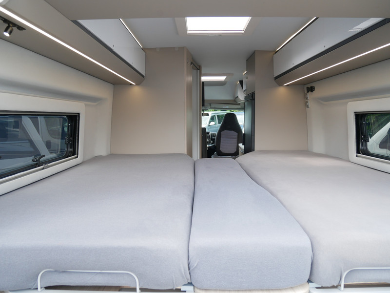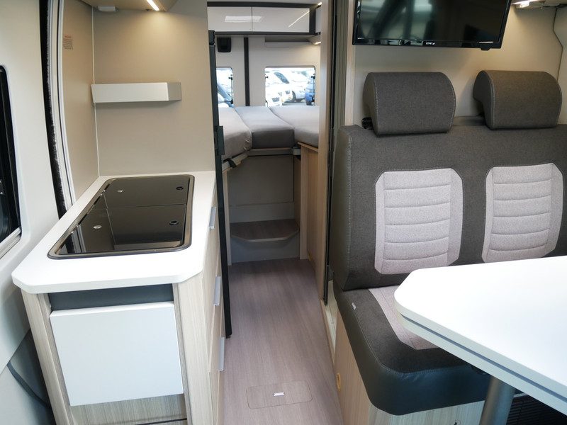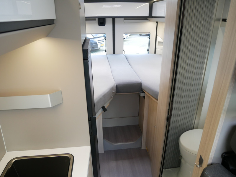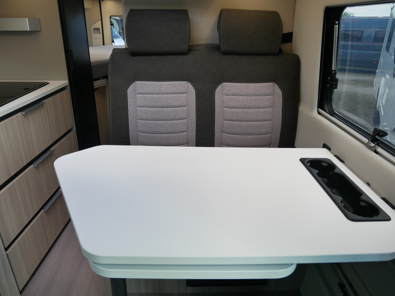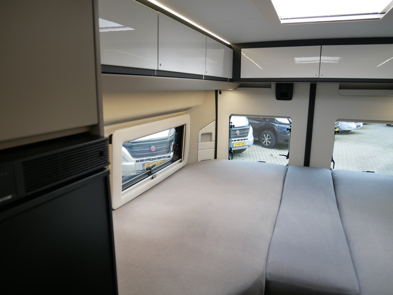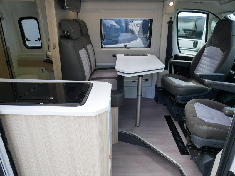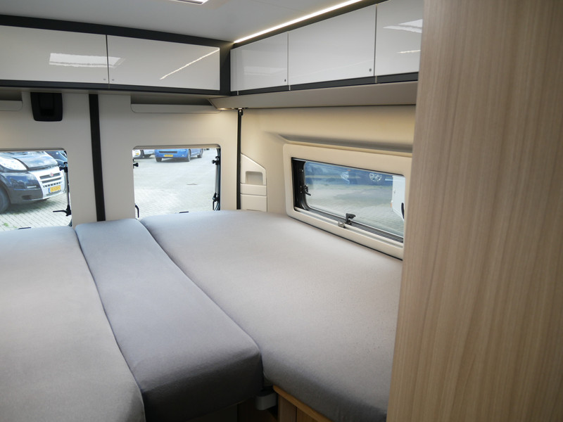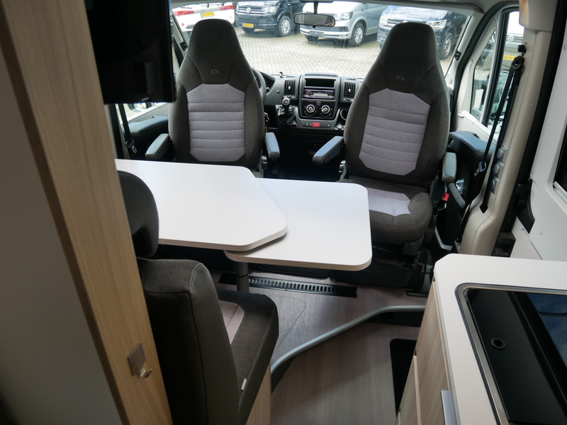 De camper is onder andere voorzien van een mooie afwerking met half lederen bekleding en modern en licht ogende houttinten in het interieur, keuken met 2 pits kooktoestel, lengtebedden, cruise control, Truma kachel gas, boiler op gas, XL koelkast, wasbak, motorairco, zeer veel opbergmogelijkheden door de vele bovenkasten, slimme badkamer met pivoterende wand (=grote badkamer of echte douchecel), fijne dikke matrassen, een ruime zit met tafel en verduistering rondom.