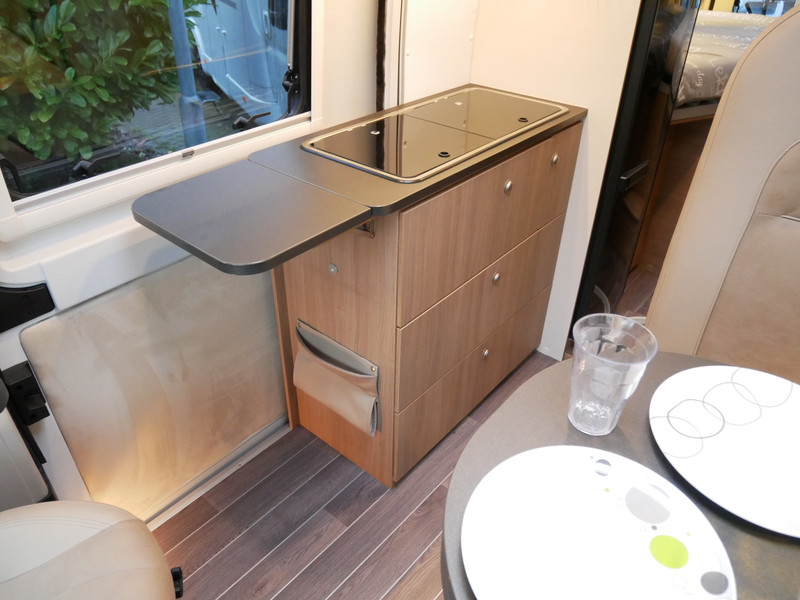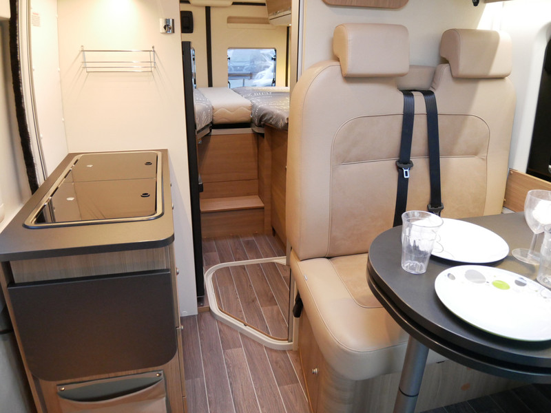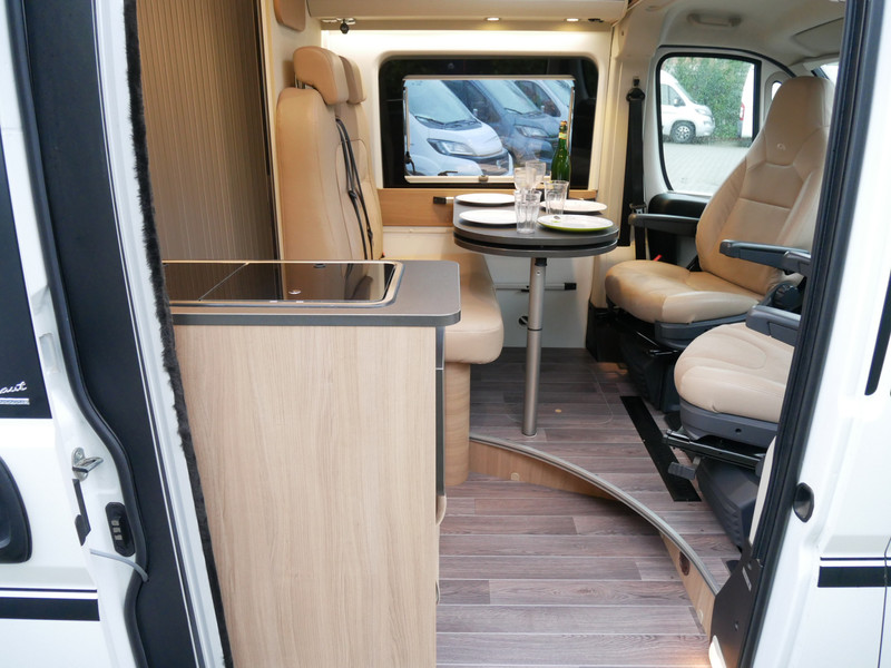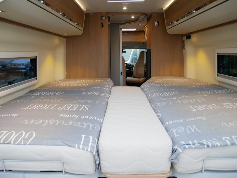 De camper is onder andere voorzien van een mooie afwerking met half lederen bekleding en modern en licht ogende houttinten in het interieur, keuken met 2 pits kooktoestel, lengtebedden, cruise control, Truma kachel gas, boiler op gas, XL koelkast, wasbak, motorairco, zeer veel opbergmogelijkheden door de vele bovenkasten, toiletruimte met doucheruimte, een ruime zit met tafel en verduistering rondom.