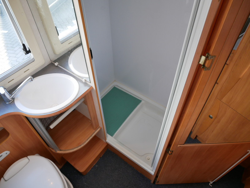 De camper is onder andere voorzien van een zeer luxe afwerking zoals mooie lichte stoffen lederen bekleding, luifel, bluetooth functie, radio/cd/mp-3 speler, luxe ruime keuken met 3 pits kooktoestel, mooie en lichte houttinten in het interieur, midden hefbed (125 X 195 Cm), dwarsbed (145 X 215 Cm), ombouw rondzit (130 X 210 Cm), wasbak, hordeur entree, airco, zeer veel opbergmogelijkheden door de zeer vele bovenkasten en de grote kast ruimtes, ruime toiletruimte samen met een douche ruimte, een ruime rondzit met grote tafel en een garage met serviceluik aan de rechter buitenzijde.
